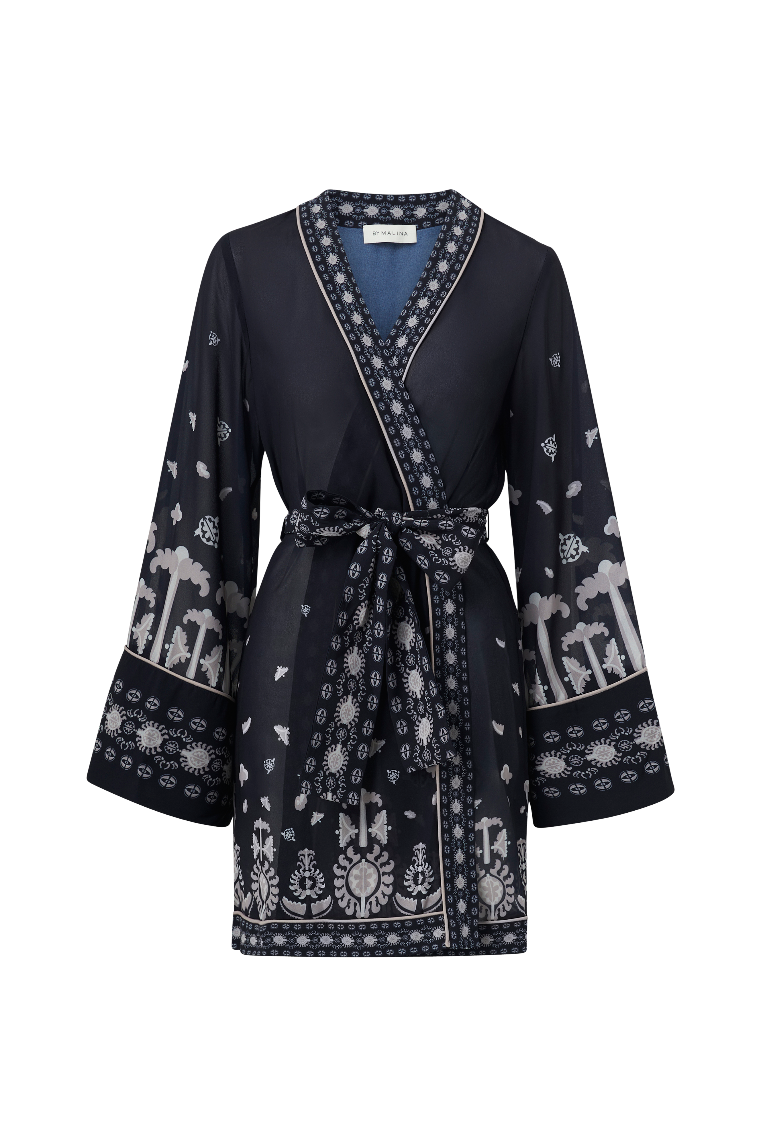 • Läpikuultava, kuvioitu kimono itsesolmittavalla vyöllä vyötäröllä• Hyvin leveät, levenevät hihat