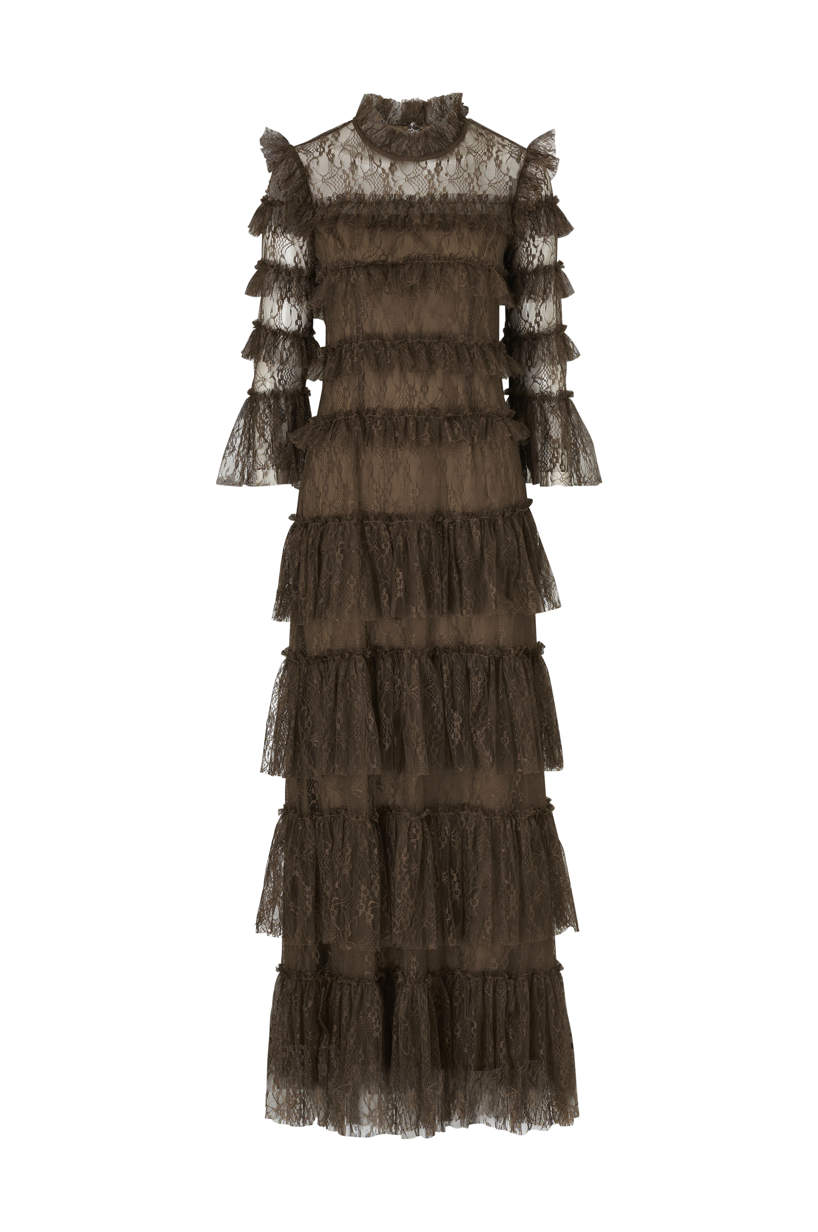 • Hieno juhlamekko pitsistä röyhelöillä joka puolella• Korkea kaula-aukko röyhelöllä• Kätketty vetoketju takaosa• 3/4-pituiset hihat röyhelöillä• Vuorattu• Pituus: 161 cm koossa M