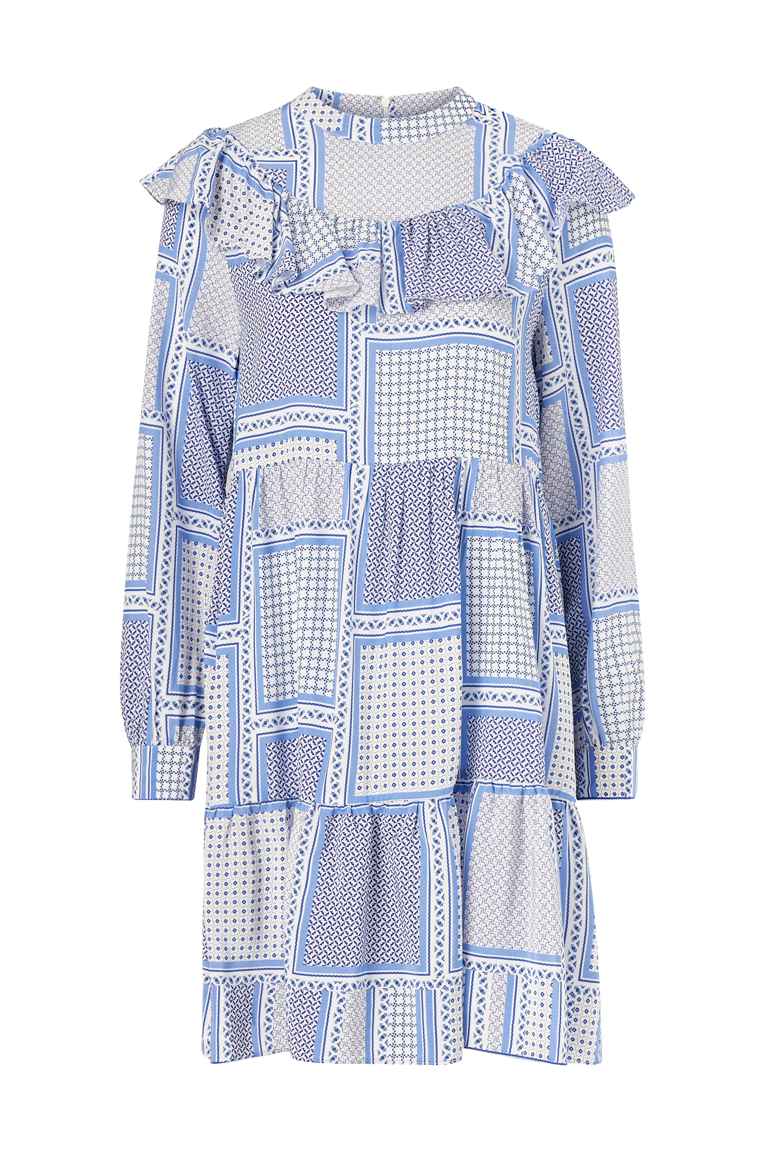 By Malina Malva Dress -mekko. A-linjainen malli, jossa väljä istuvuus ja ylhäällä röyhelö ympäriinsä. Pitkät hihat, joissa kalvosin ja nappi. Piilovetoketju takana. Pituus n. 91 cm koossa S.