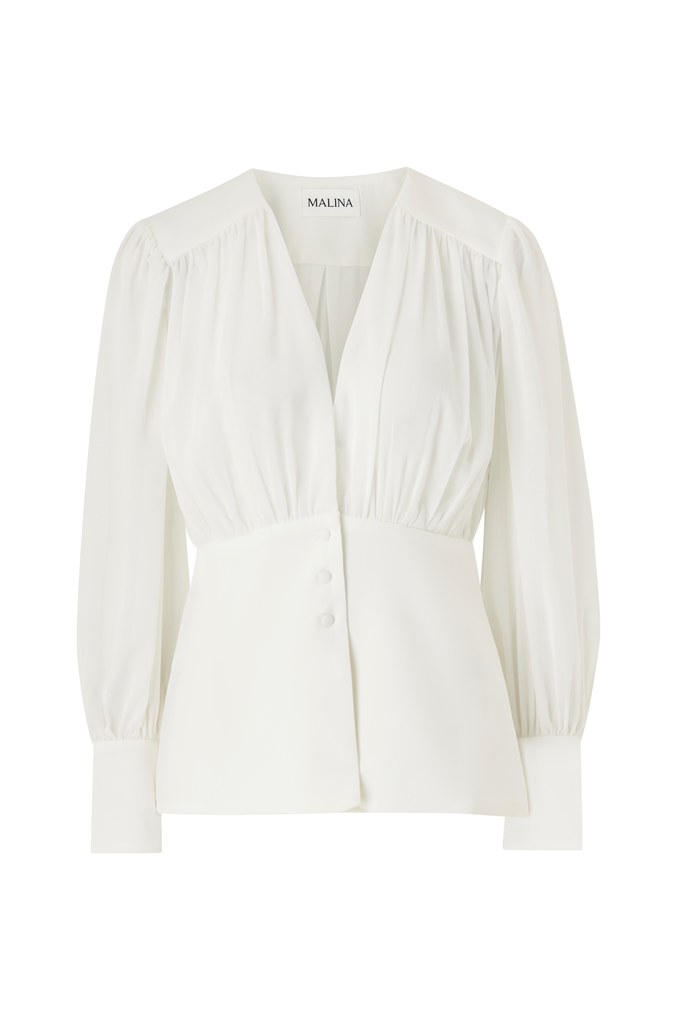 • Korostettu vyötärö levenevällä alaosalla ja päällystetyillä napeilla