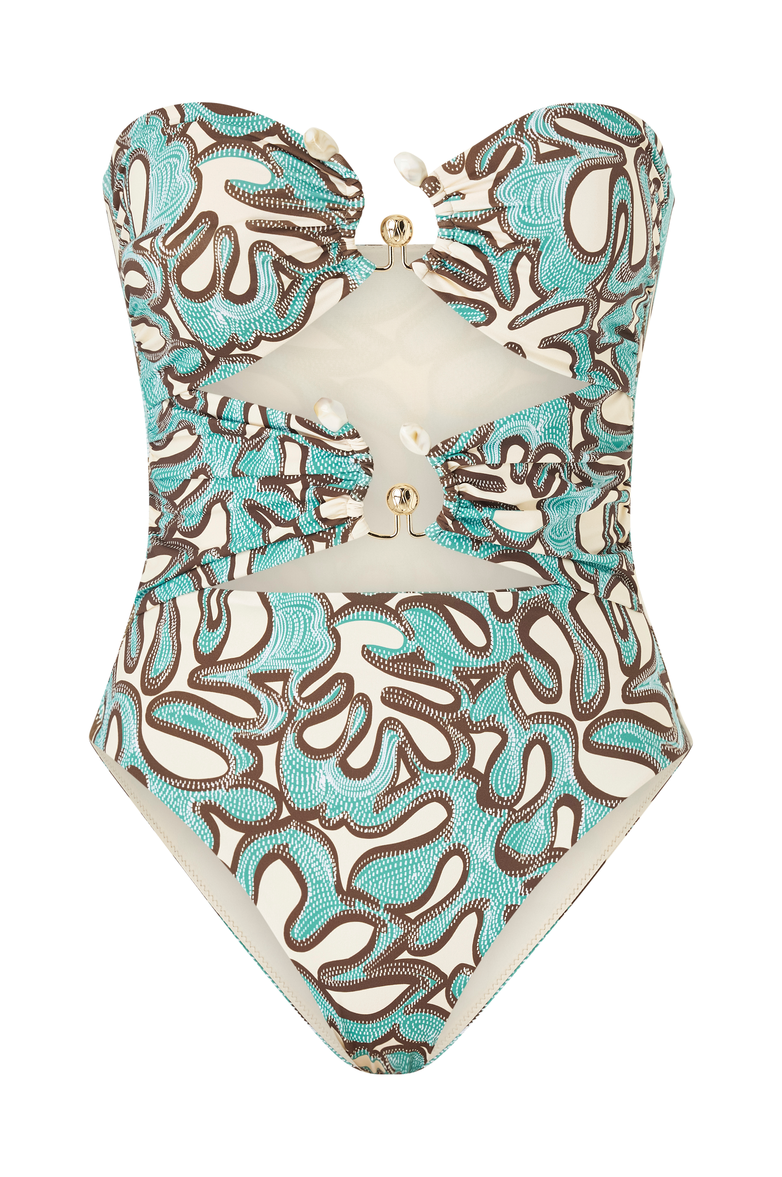 • Täysin vuorattu, olkaimeton uimapuku• Halkioyksityiskohta koristeellisilla yksityiskohdilla edessä• Kupit irroitettavalla toppauksella ja sisäpuolen silikonireunuksella edessä• Korkea lahjeleikkaus
