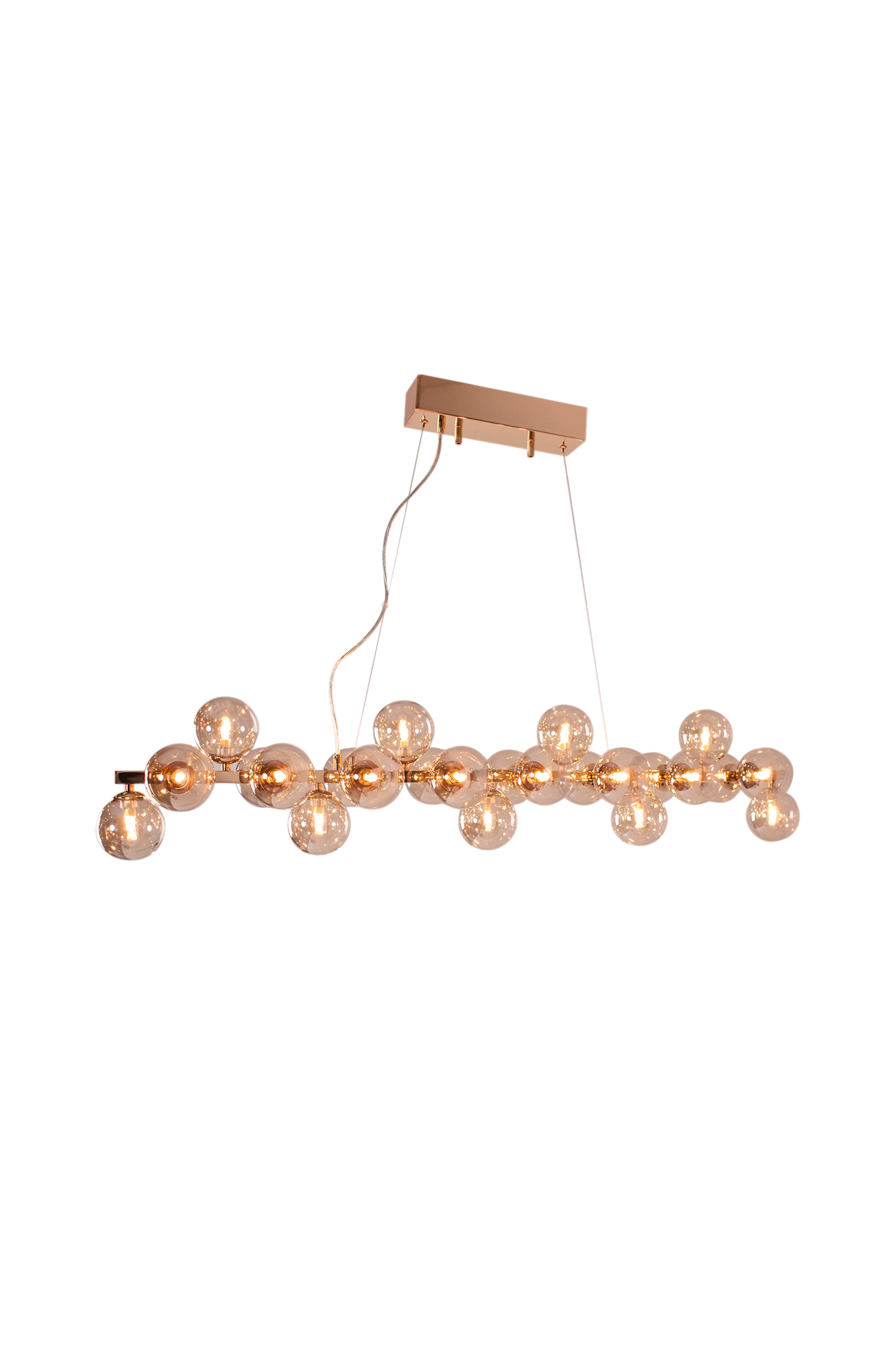 Splendor Bar -kattovalaisimessa on 24 läpikuultavaa lasikuulaa rivissä. Lasissa on näyttävä kuvio. Valaisin sopii täydellisesti ruokapöydän tai neuvottelupöydän ylle. Valaisimen pituus 124 cm, leveys 24 cm. Lampunkanta 25 x G9. Enintään 20 W.