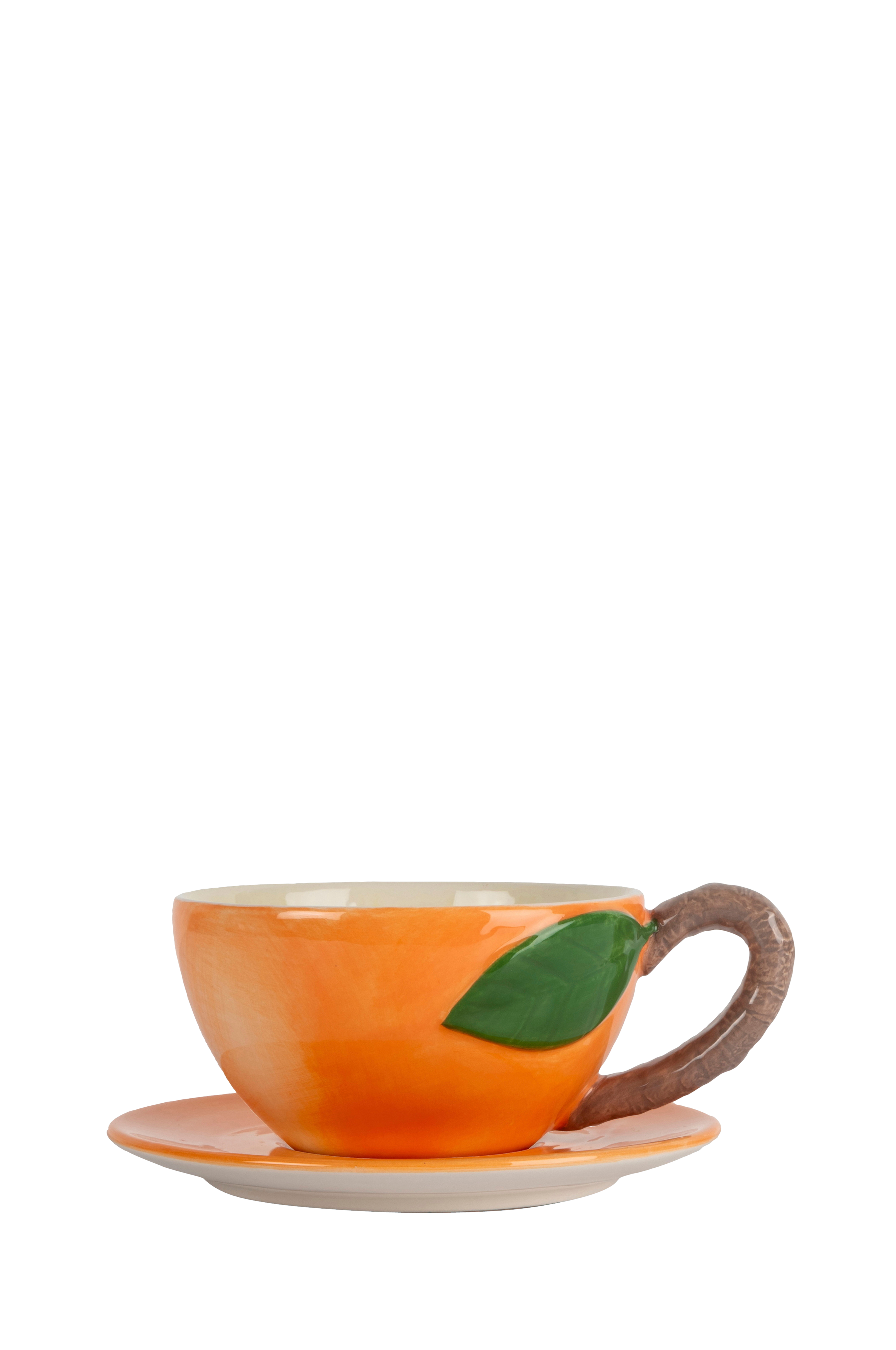 Tämä kuppi ja aluslautanen, jonka muoto on peach, on pehmeä, aistillinen ja ihastuttava. Byonin maailman Fruity-sarjaan kuuluva Peach näyttää yhtä kauniilta yksinään kuin hedelmäisessä sekoituksessa sisarustensa kanssa. Täydellinen kuppi lahjaksi parhaalle ystävällesi. Käsintehty ja käsin maalattu oranssin sävyyn. Suunnitellut Byon Studio. Toimitetaan Byon-laatikossa.