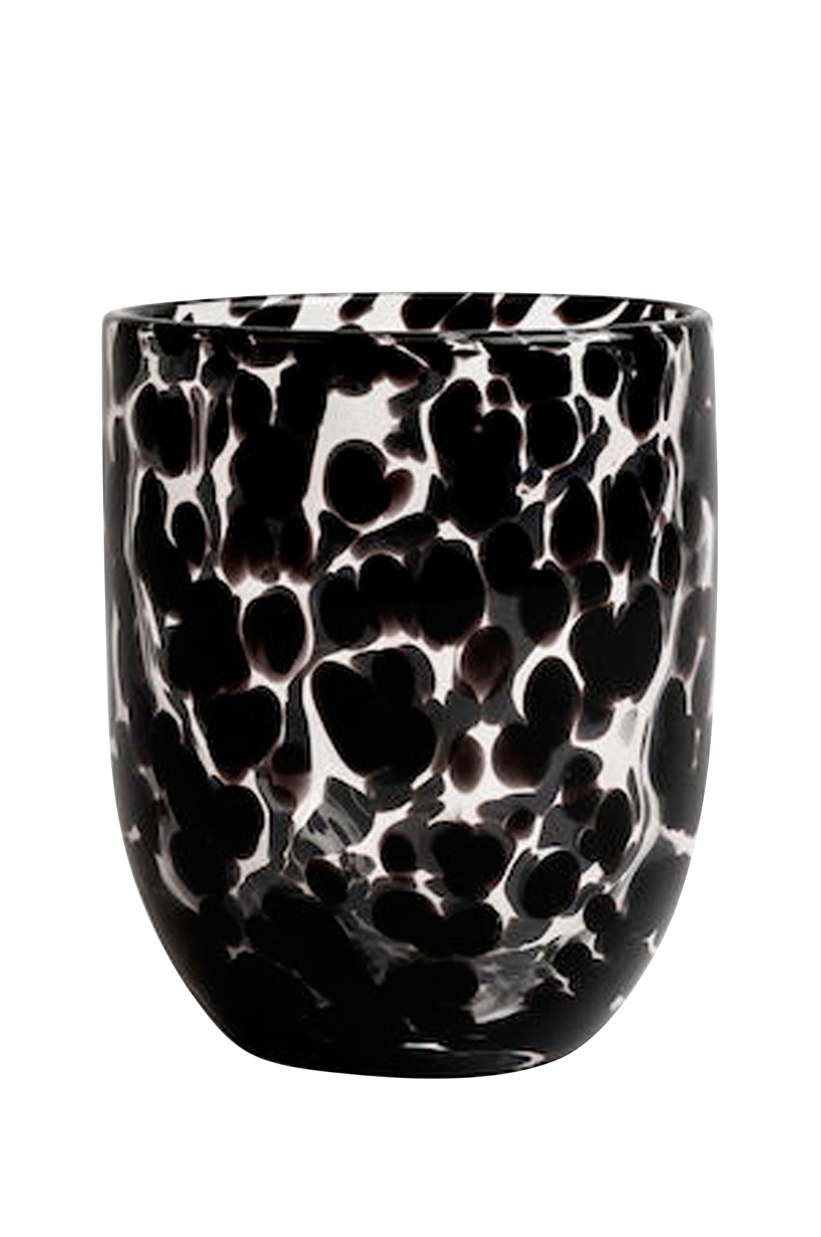 Kuin herkullinen karamelli - sievä, hyvä ja vastustamaton. Valmistettu käsinpuhalletusta lasista, jossa on leikkisä konfettikuvio yönmustissa sävyissä. Tarjoilemme juomia, mehua, maitoa tai kahvia. Sopii lämpökynttilälle ja upeaksi hammasharjalasiksi piristämään kylpyhuoneen ilmettä.