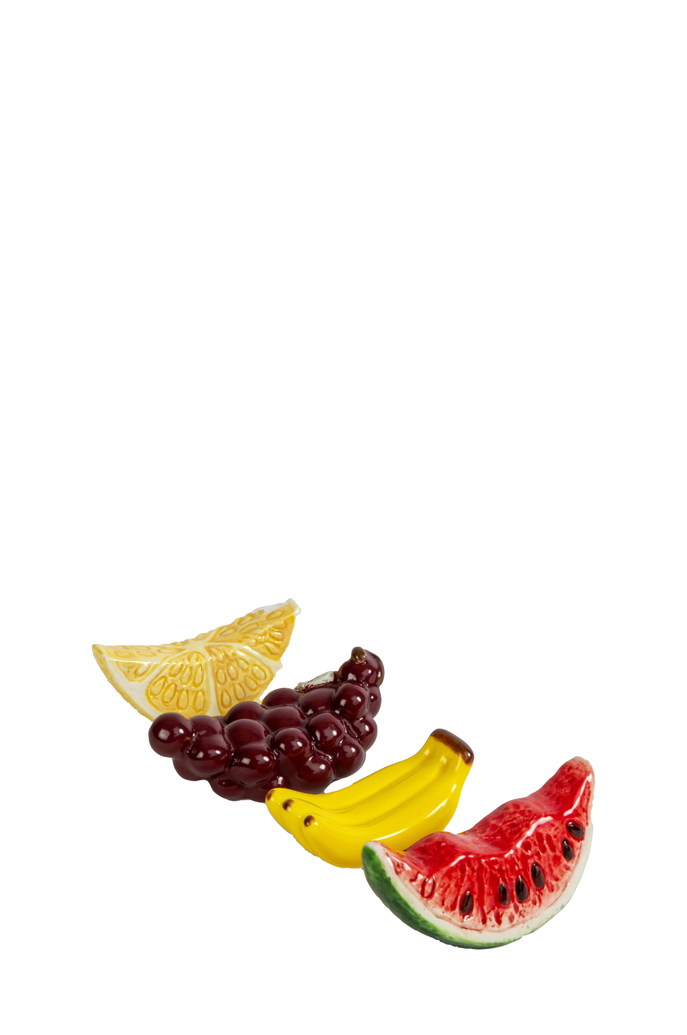 Kauniin pöydän kattaminen on klassista, mutta kattauksen antaminen ilkikurisen näköiseksi on uutta ja hyvin paljon Byon. Kokonaisen salaatin muodostamalla syömäpuikkotelineellä et ole vain ratkaissut asiaa, vaan olet myös luonut vieraillesi persoonallisen pöydän kattauksen. Pidikkeet toimivat sekä syömäpuikkojen että ruokailuvälineiden kanssa. Valmistettu dolomiitista. 4 kpl Fruit Byon laatikossa - BANAANI, VILJA, Lemon ja VESIMELONI. Tämä on loistava lahja ostettavaksi henkilölle, jolla on jo kaikkea. Syömäpuikkoteline kuuluu sarjaan FruitY.5,5x2x3cm/6,5x3,5x3cm/6x3,5x2,5cm/6x2,5x3cm/6x2,5x3cm.
