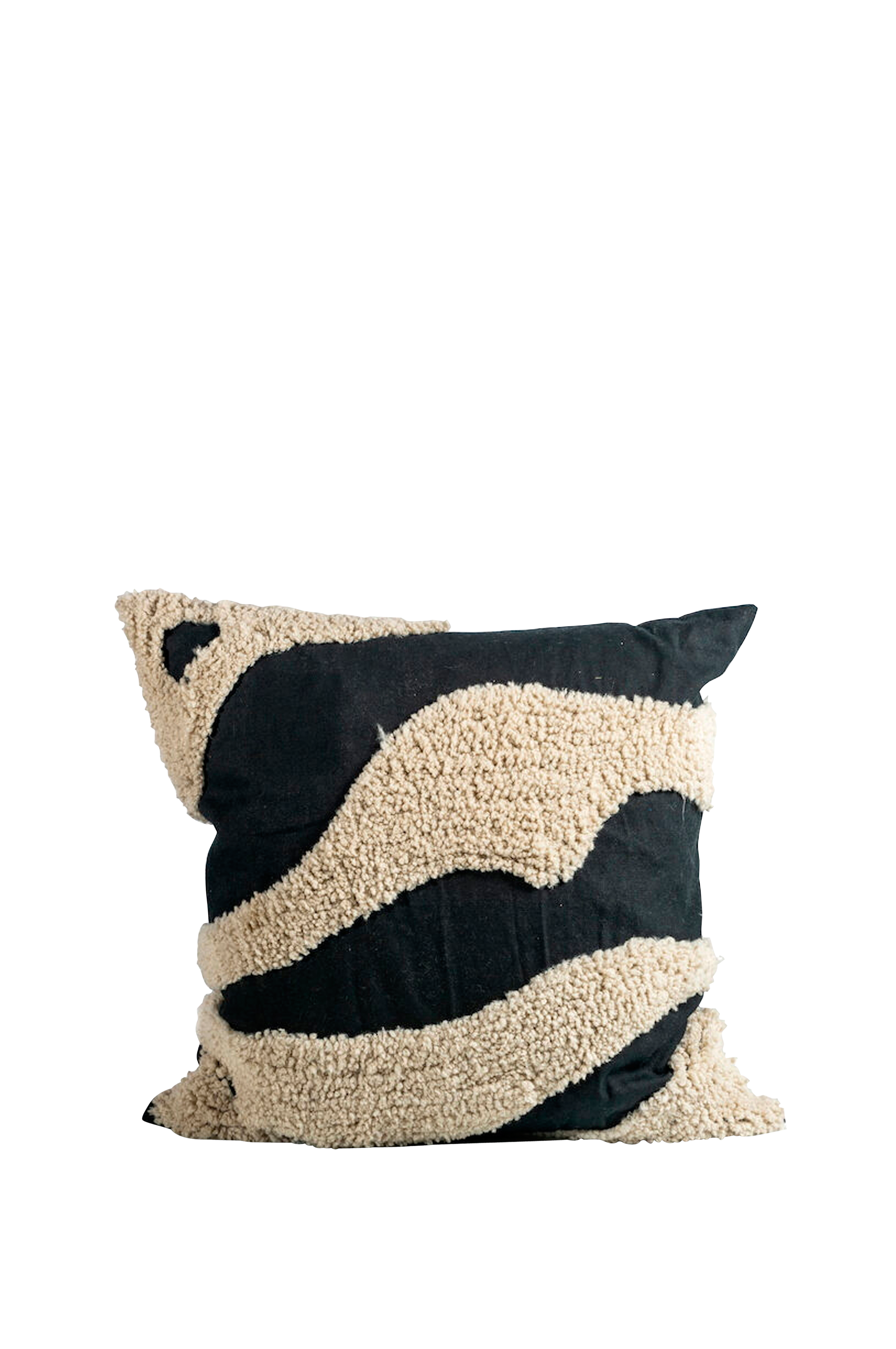 Nimi kertoo kaiken tästä tyynystä. Fluffyssa yhdistyvät leikkisyys ja uteliaisuus, ja sitä tekee mieli silittää ja tunnustella. Aaltojen orgaaninen muoto sekä hapsujen ja sametin väliset tasoerot luovat jotain aivan ainutlaatuista ja ekstraa. Kuviossa yhdistyvät täydellisesti musta ja beige. Koko 50 x 50 cm. Mukana täyte.