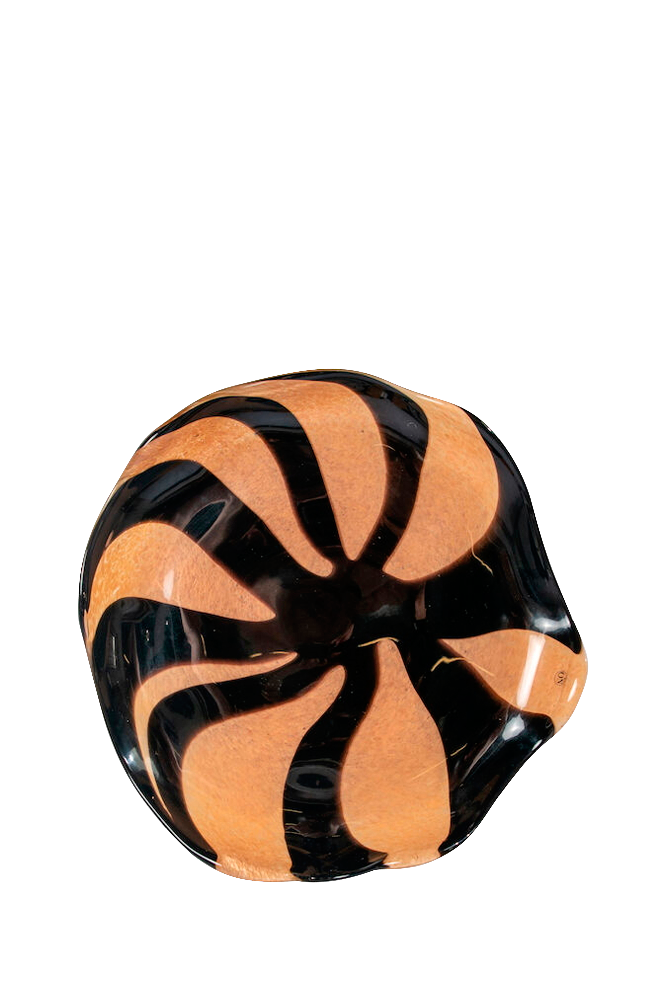 Käsintehty lasivati, jossa on orgaaniset muodot ja upeita kaaria. Ylellinen ja näyttävä. Tämä vati puhuu puolestaan ja ottaa paikkansa jokaisessa pöydässä ja hyllyllä kodissasi. Halkaisija 27 cm ja korkeus 4 cm.