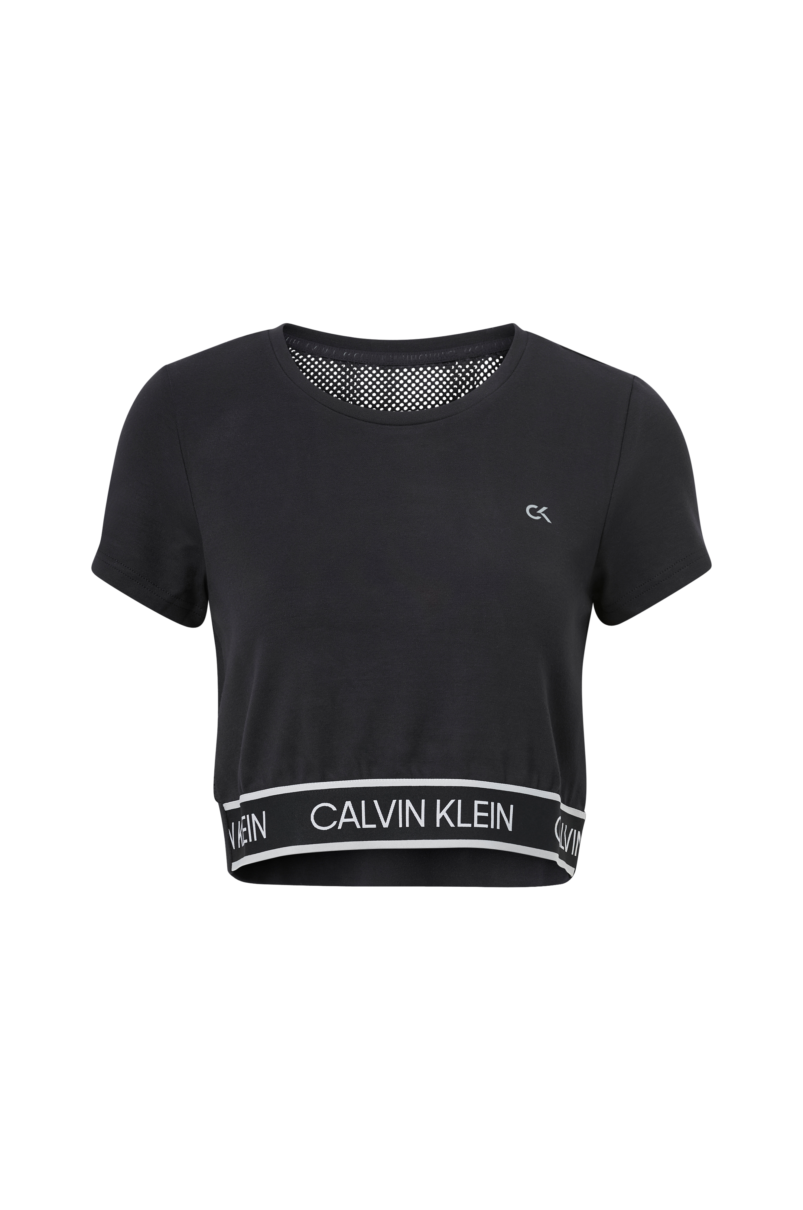 Lyhyt pusero pehmeää trikoota, takakappale verkkokangasta. Leveä logokuminauha alareunassa. Lyhyet hihat ja pyöreä joustinneulospääntie.