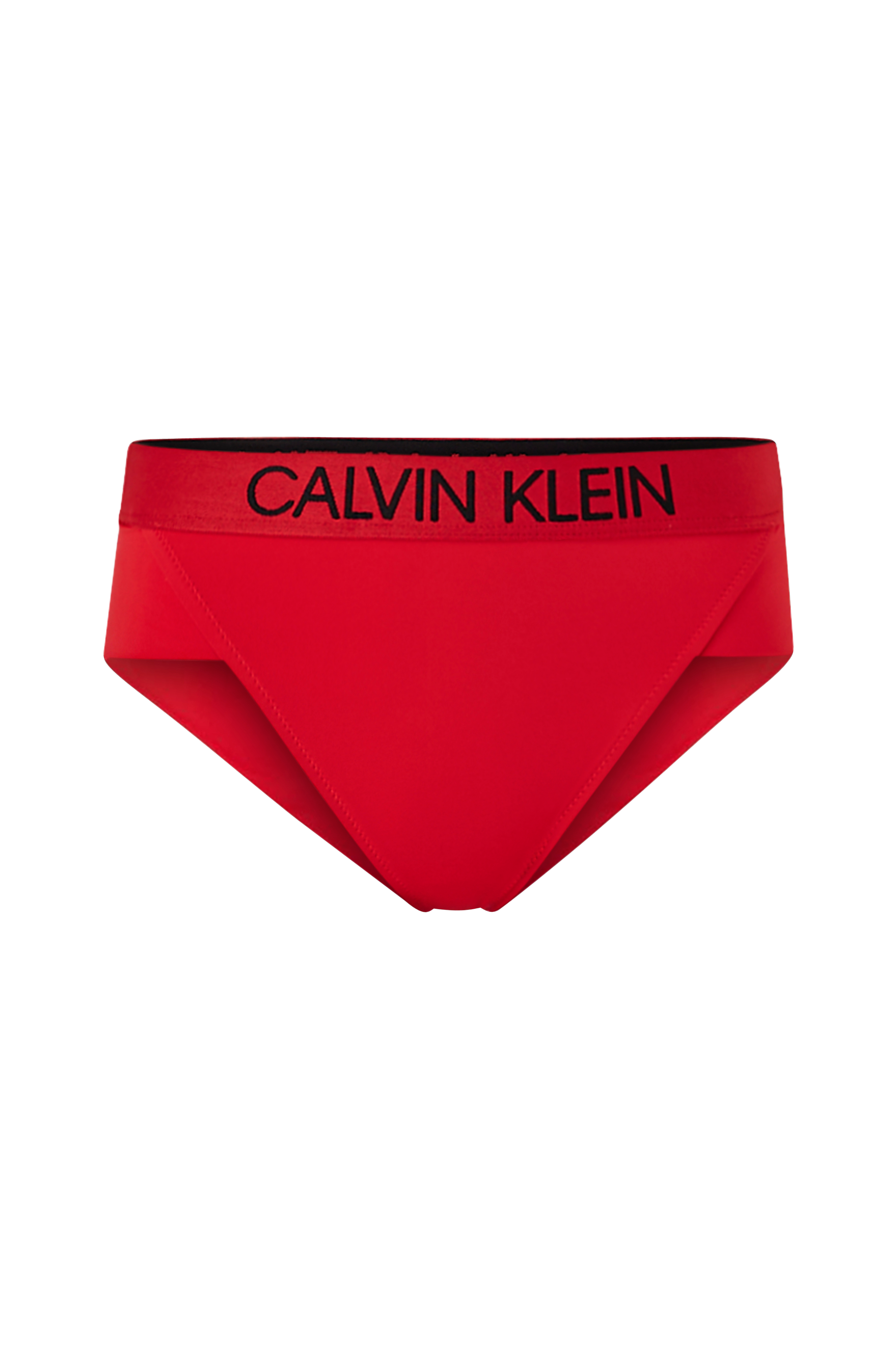 Calvin Klein Underwear Brazilian Hipster -bikinihousut, joissa kietaisusauma sivuilla edessä ja leveä logokuminauha vyötäröllä. Kokovuori.