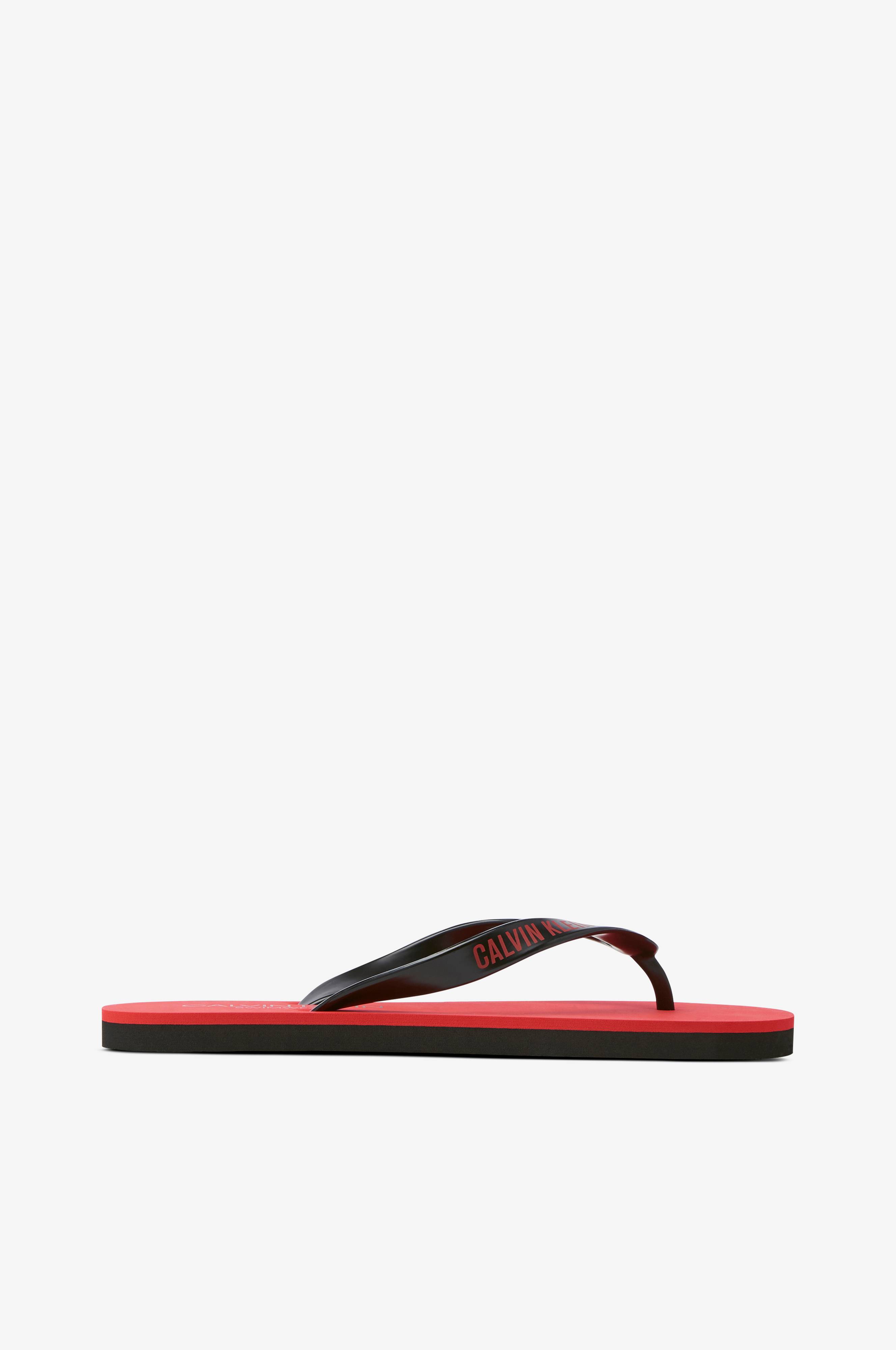 Klassiset varvassandaalit. Kuminen varvasremmi, jossa logo.