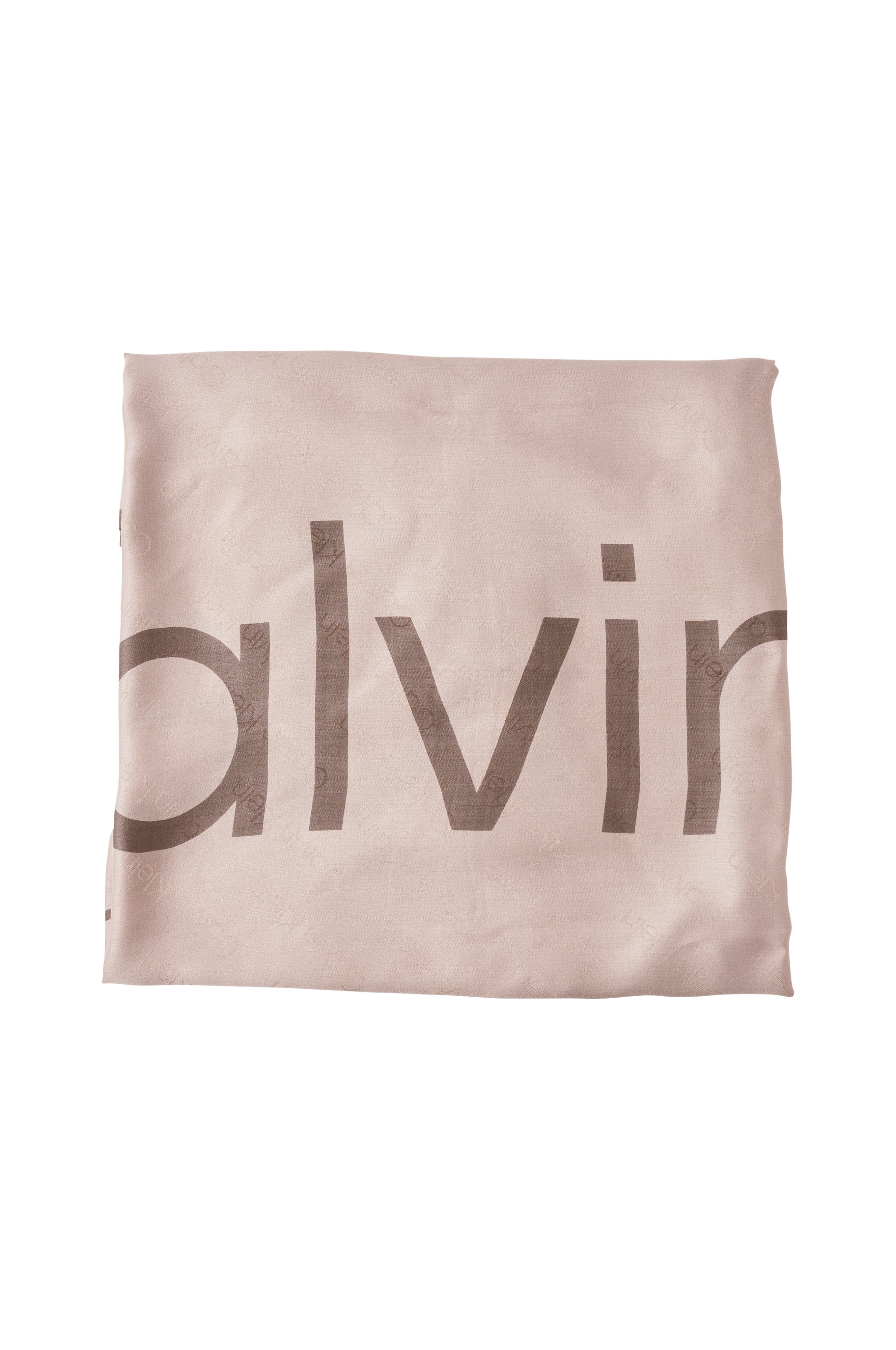Iso huivi pehmeää materiaalia, jossa logokuvio. Kapea hapsureuna päissä. Mitat noin 70 x 180 cm.