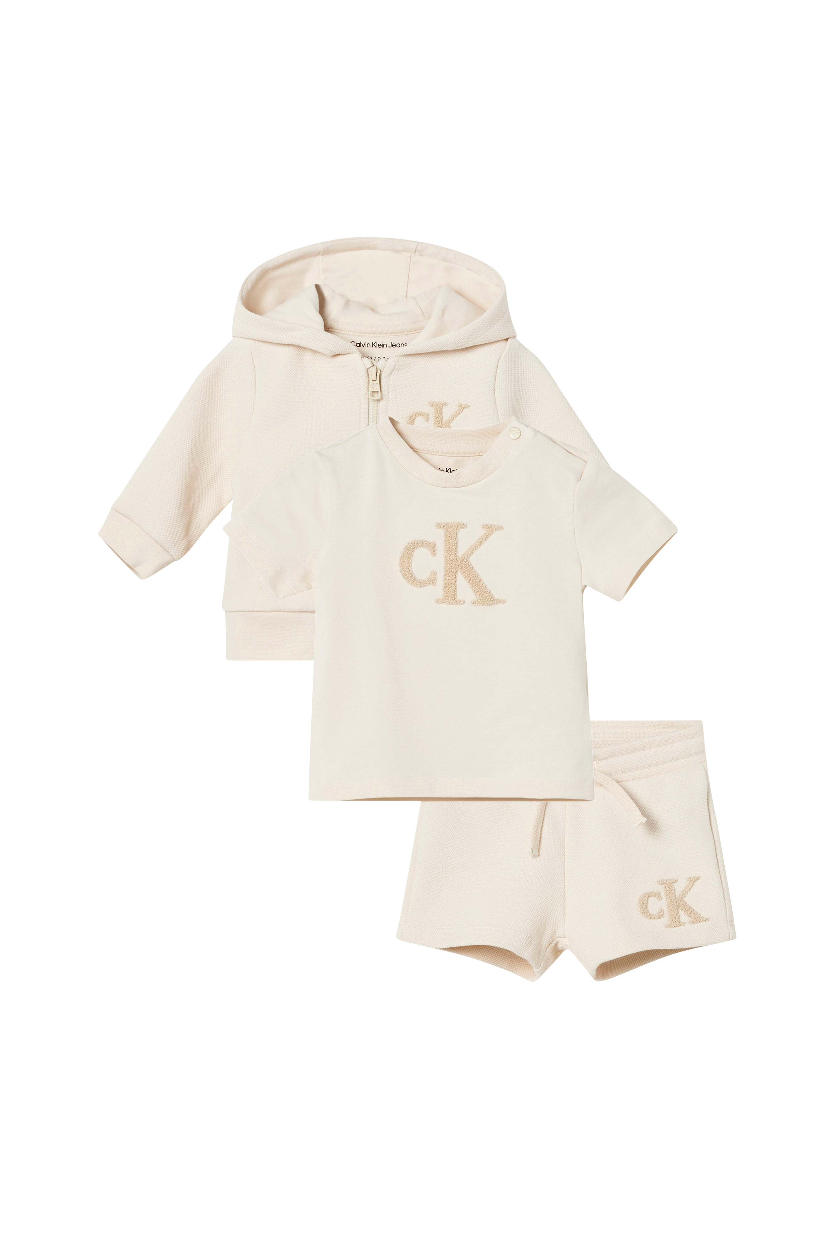- Pikeeneuloksesta valmistetut shortsit, joissa joustava vyötärö ja nyöri