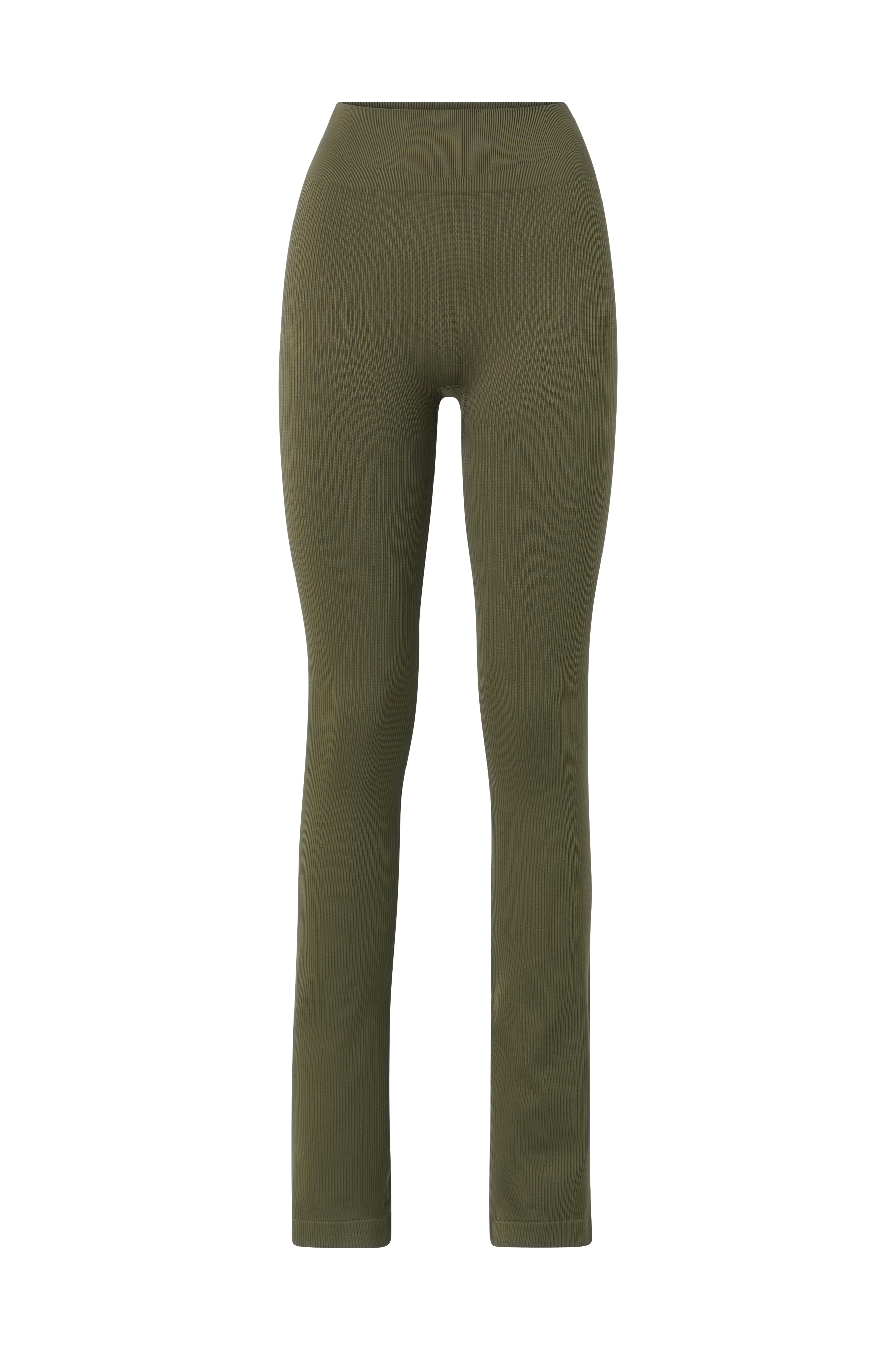 Casall Seamless Rib Slit Pants -housut pehmeää joustinneulosta. Korkea vyötärö, jossa 8 cm:n vyötärönauha. Levenevät lahkeensuut, joissa sivuhalkiot.