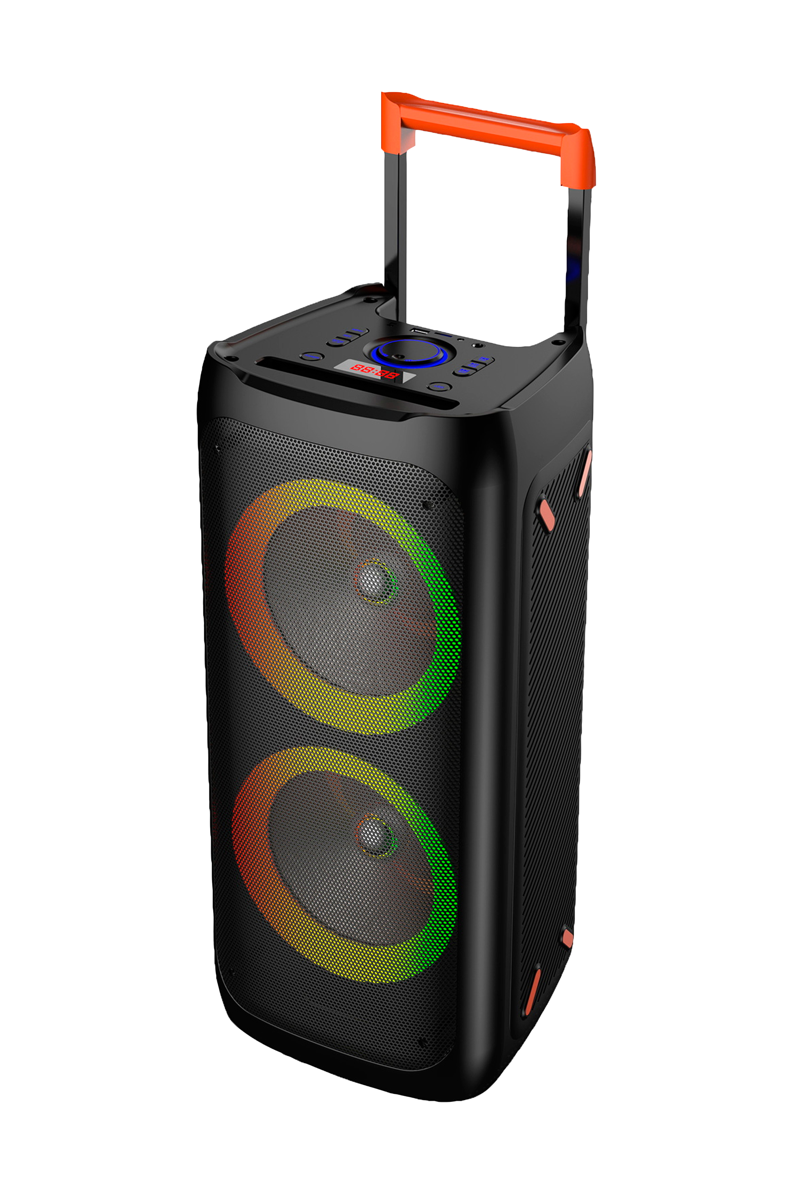 Langattomassa kaiuttimessa on kristallinkirkas ääni, joka parantaa musiikkia, elokuvia ja pelejä. Sen tehokkaat kaiuttimet takaavat selkeyden ja syvyyden jokaisessa tahdissa, äänessä ja sanassa. Integroidut RGB-valot luovat vaikuttavan visuaalisen näytön, joka sopii sekä rentouttaviin iltoihin että vilkkaisiin juhliin. Mukana toimitettu mikrofoni sopii karaokeen, luentoihin tai improvisoituihin jammailusessioihin, sillä se takaa, että äänesi kuuluu selvästi. Luotettavan langallisen yhteyden ansiosta vältyt paristo- tai signaaliongelmilta. Sisäänrakennetun kahvan ansiosta helposti kuljetettava laite on liitettävissä Bluetooth-, AUX- tai USB-liitännän kautta, mikä takaa upean äänikokemuksen.