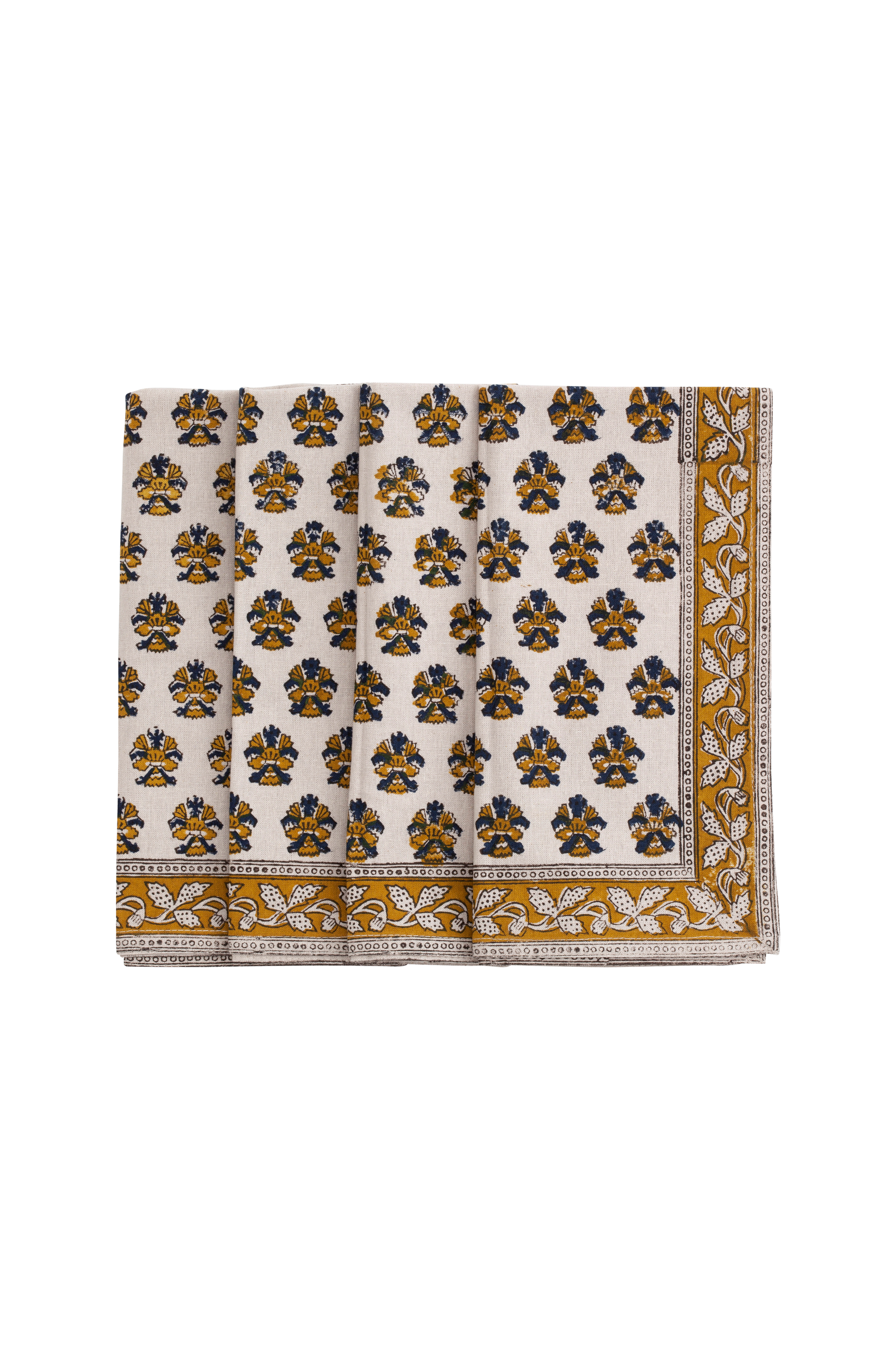 Neljän koristeellisen puuvillaisen lautasliinan sarja, jossa on aukeama Jokainen lautasliina on painettu huolellisesti käsin puupainantaan perustuvalla ikivanhalla tekniikalla, joka tuo jokaiseen tekstiiliin syvyyttä, tekstuuria ja sielua. Pese käsin painetut lautasliinat lyhyellä (enintään 1 tunti) ja hellävaraisella ohjelmalla villalle/siidolle miedolla pesuaineella. Silitä kuten puuvilla.