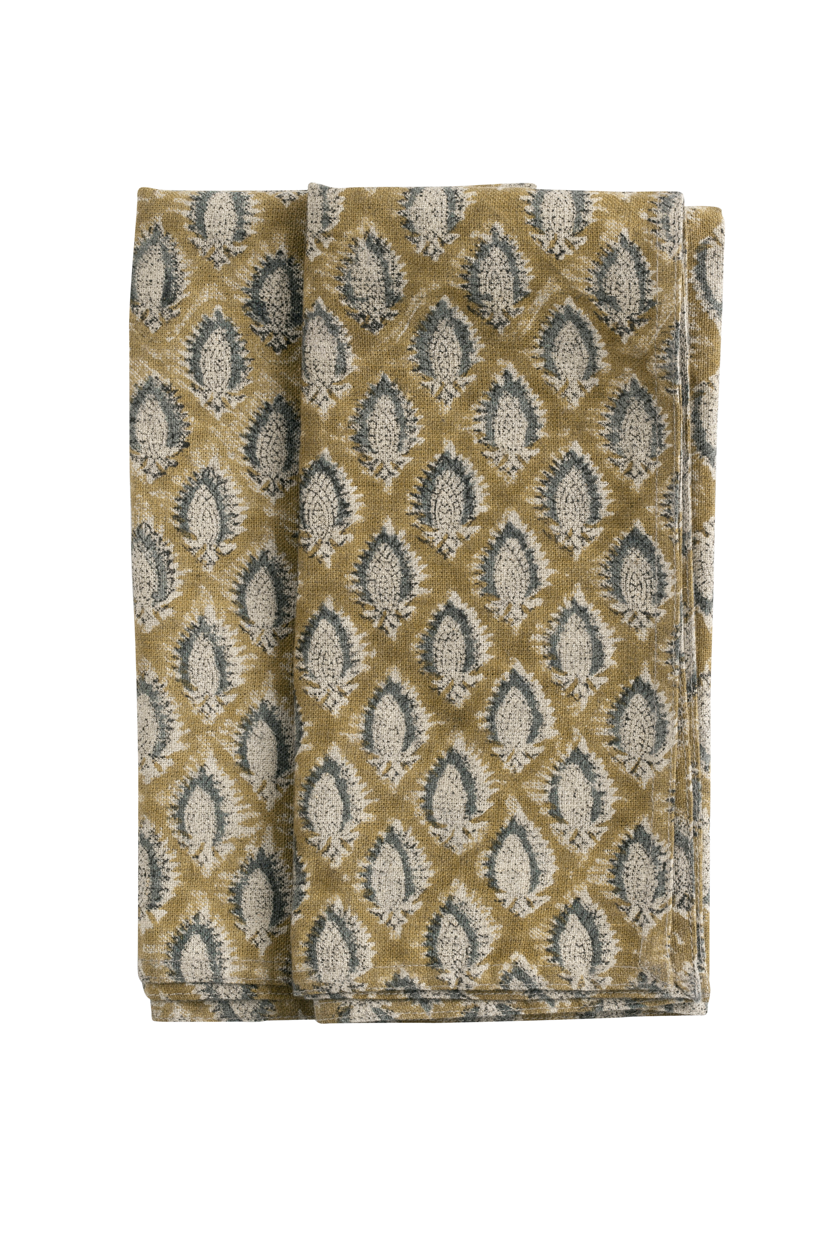 Kahden eksklusiivisen pellavaisen lautasliinan setti, jossa on tyylikäs ja monivärinen toistuva kuvio. Kuvio on painettu käsin perinteisellä intialaisella painotekniikalla. Ainutlaatuinen käsityö, joka antaa jokaiselle tekstiilille ainutlaatuisen ja koristeellisen ilmeen. Pese lautasliinat huolella lyhyellä (max 1 tunti) ja hellävaraisella ohjelmalla villalle/siidolle miedolla pesuaineella.
