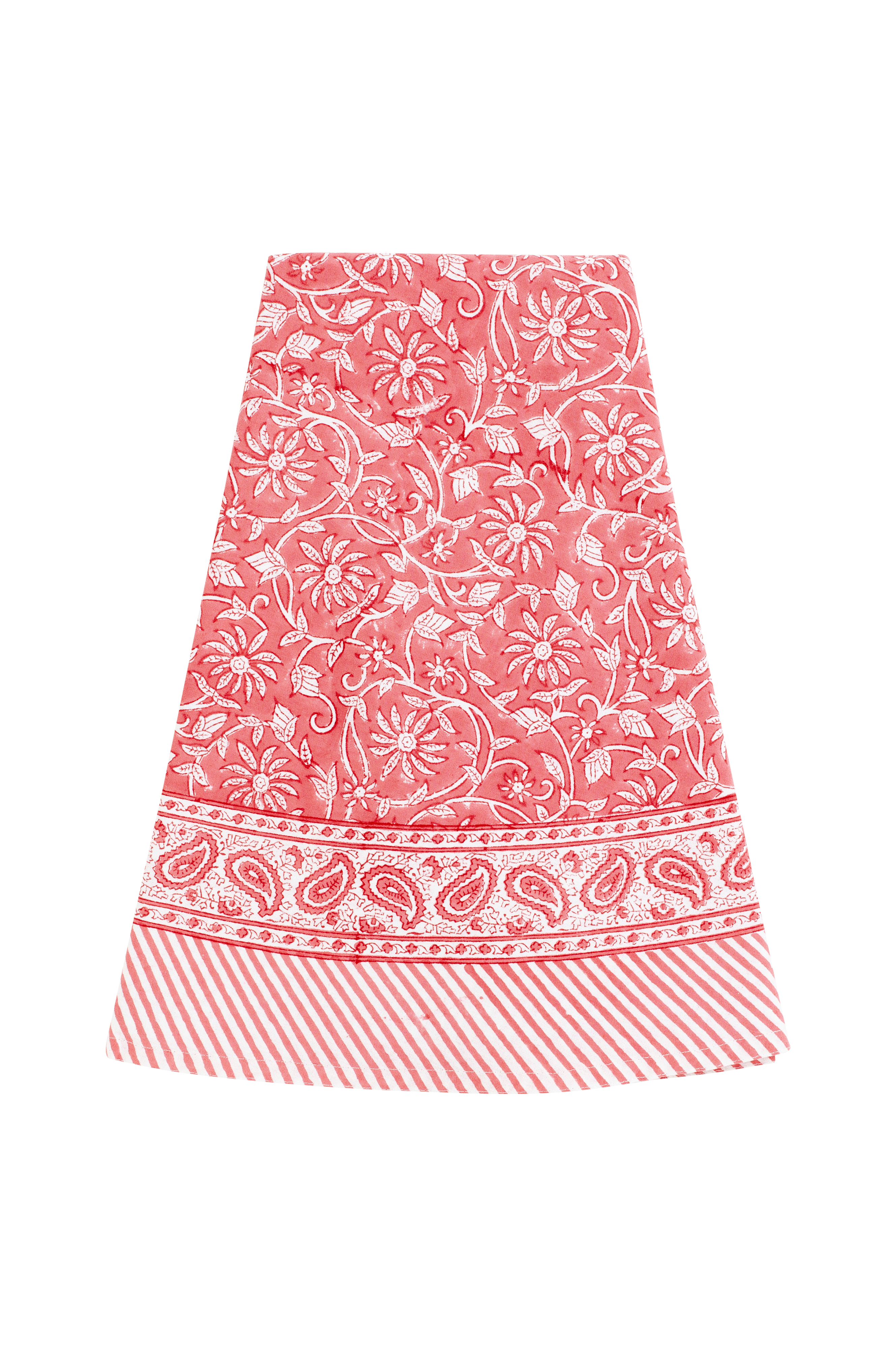 Pyöreä puuvillainen pöytäliina, jossa on kaunis kuvio. Kangas on painettu käsin perinteisellä intialaisella lohkopainotekniikalla. Ainutlaatuinen käsityötaito, joka antaa kankaalle eloisan ja koristeellisen ilmeen. Pese 30 asteen villa-/silkkiohjelmassa miedolla nestemäisellä pesuaineella ilman valkaisuaineita. Älä kuivaa rumpukuivauksessa. Voidaan silitellä lämpimänä.