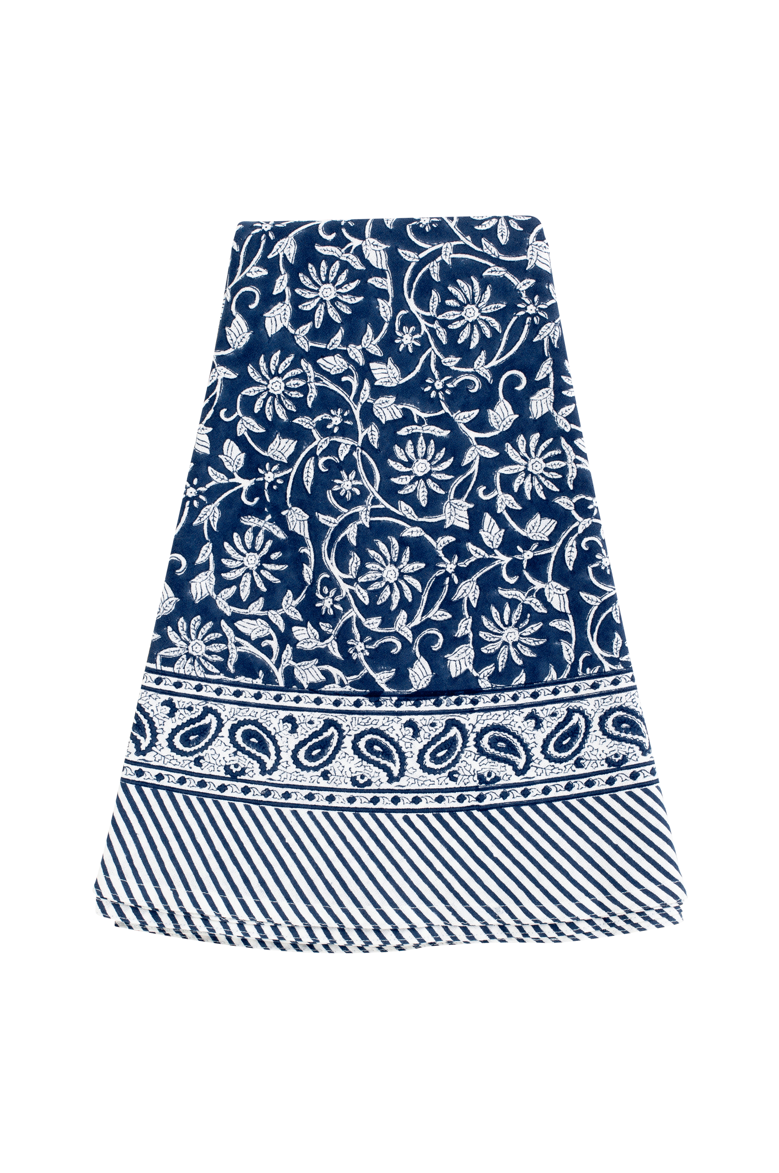 Pyöreä puuvillainen pöytäliina, jossa on kaunis kuvio. Kangas on painettu käsin perinteisellä intialaisella lohkopainotekniikalla. Ainutlaatuinen käsityötaito, joka antaa kankaalle eloisan ja koristeellisen ilmeen. Pese 30 asteen villa-/silkkiohjelmassa miedolla nestemäisellä pesuaineella ilman valkaisuaineita. Älä kuivaa rumpukuivauksessa. Voidaan silitellä lämpimänä.