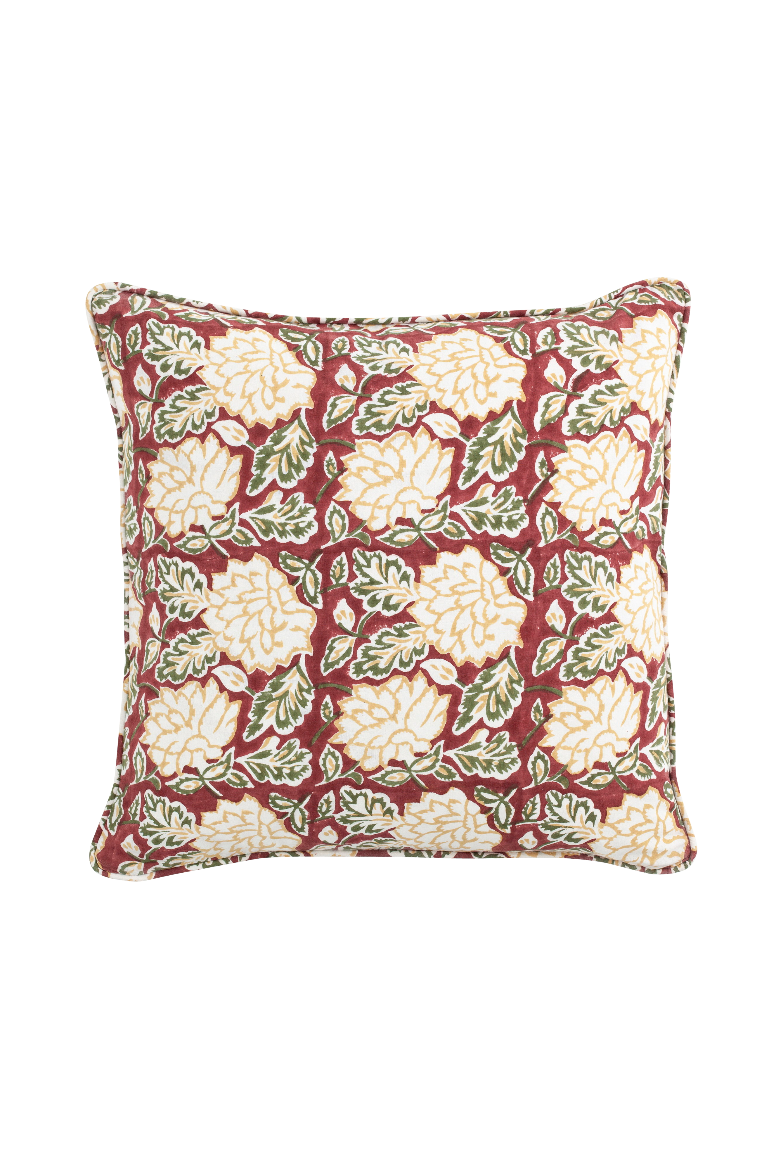 Kaunis tyynynpäällinen, joka on valmistettu luomusertifioidusta Gots puuvillasta ja jossa on monivärinen kukkakuvio. Kuvio on painettu käsin perinteisellä intialaisella painotekniikalla. Ainutlaatuinen käsityö, joka antaa jokaiselle tekstiilille ainutlaatuisen ja koristeellisen ilmeen. Pese tyynynpäällinen lyhyellä (enintään 1 tunti) ja hellävaraisella ohjelmalla villalle/siidolle miedolla pesuaineella.