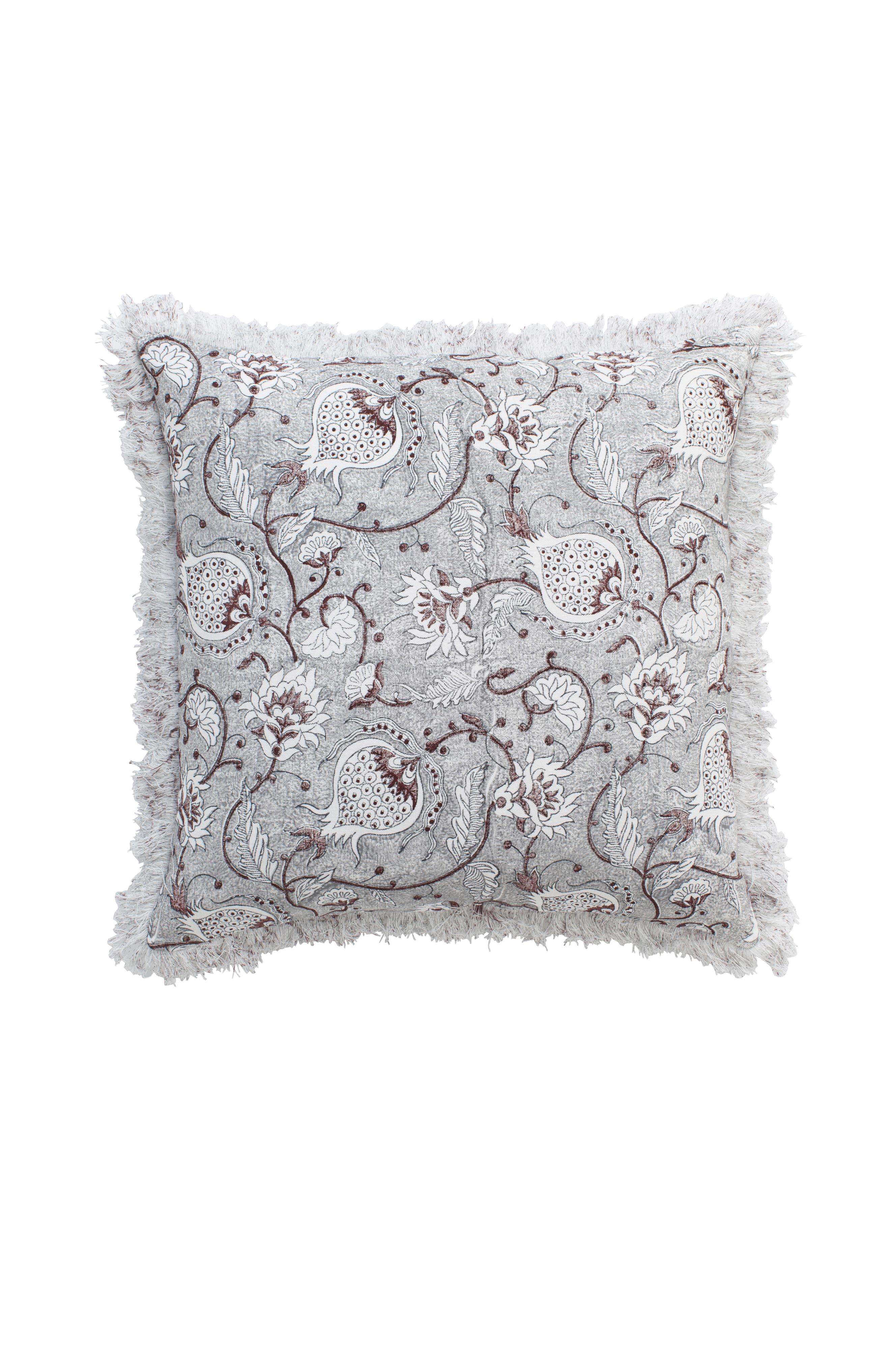 Elegantti Chamois-tuotemerkin tyynynpäällinen, jossa hapsut. Tyynynpäällinen ylellistä pellavaa, jossa käsinpainettu eksoottinen kuvio. Käsintehty tekniikka tekee jokaisesta tyynynpäällisestä ainutlaatuisen ja luo elävän, harmonisen ja kauniin ilmeen, josta Chamois on tunnettu.