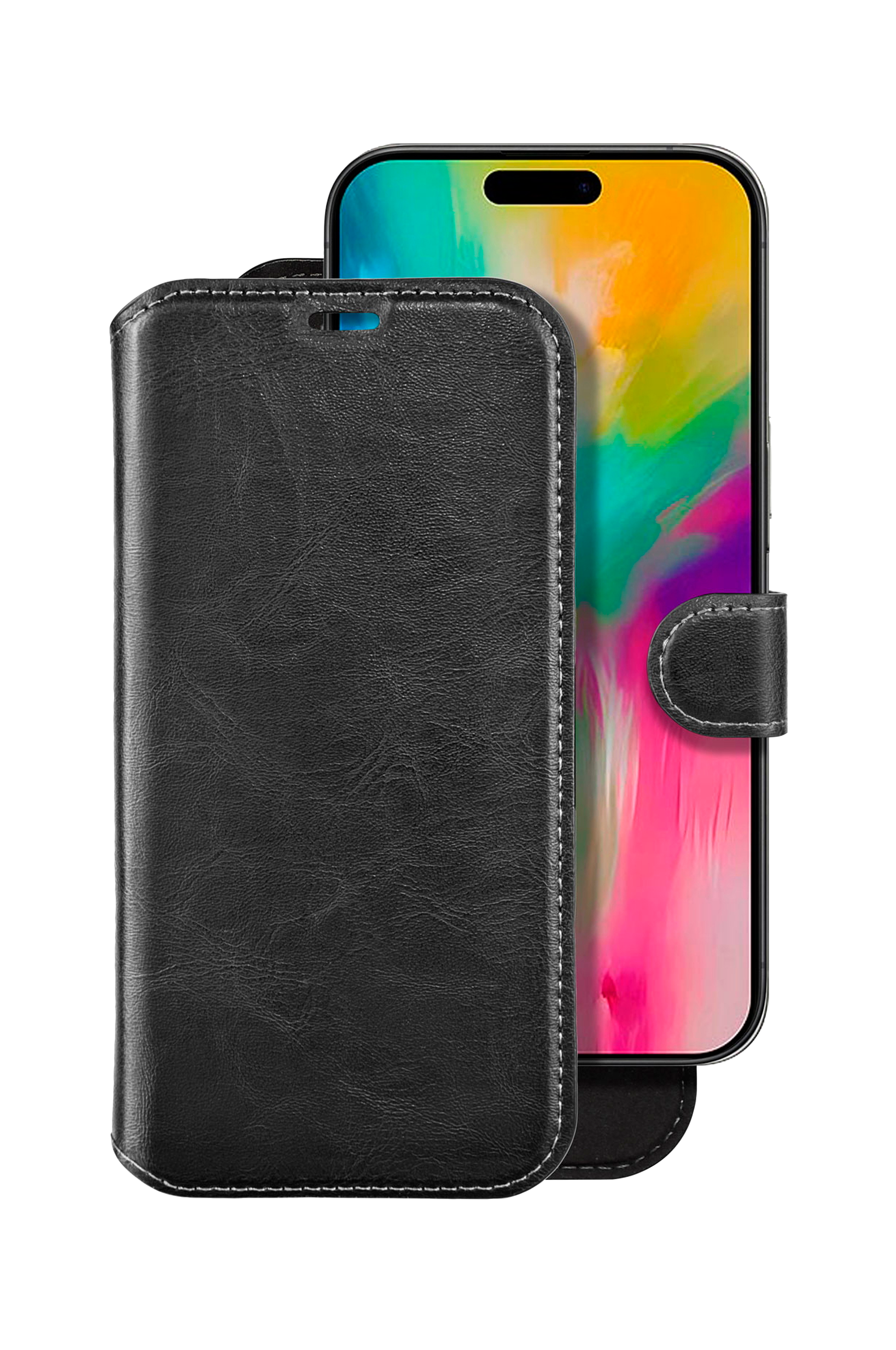 - Kestävää keinonahkaa oleva tyylikäs lompakkokotelo.