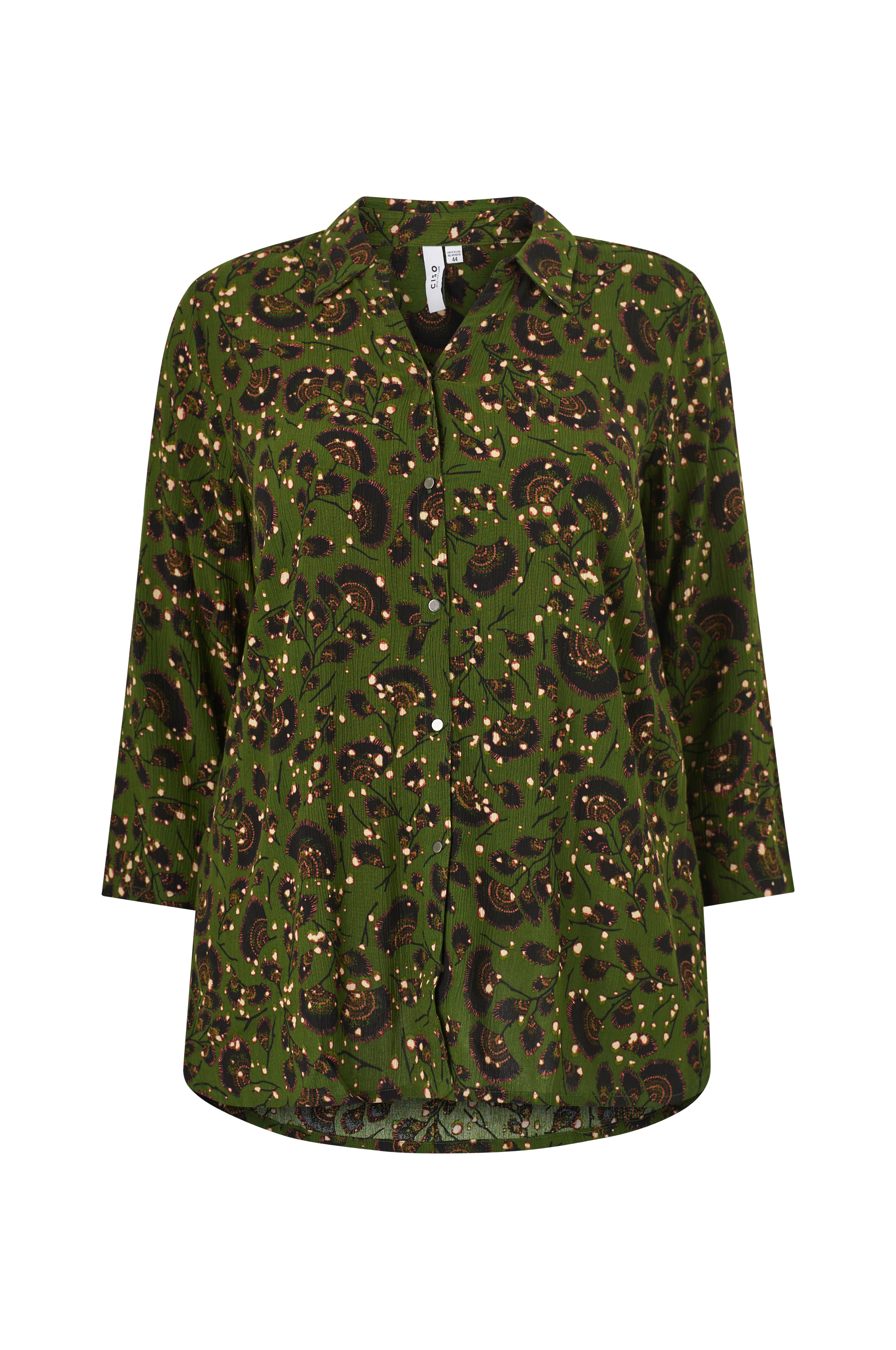 • Suora malli krepistä• Kaulus halkiolla kaulassa• Napit edessä• Suora, 3/4-pituinen hiha