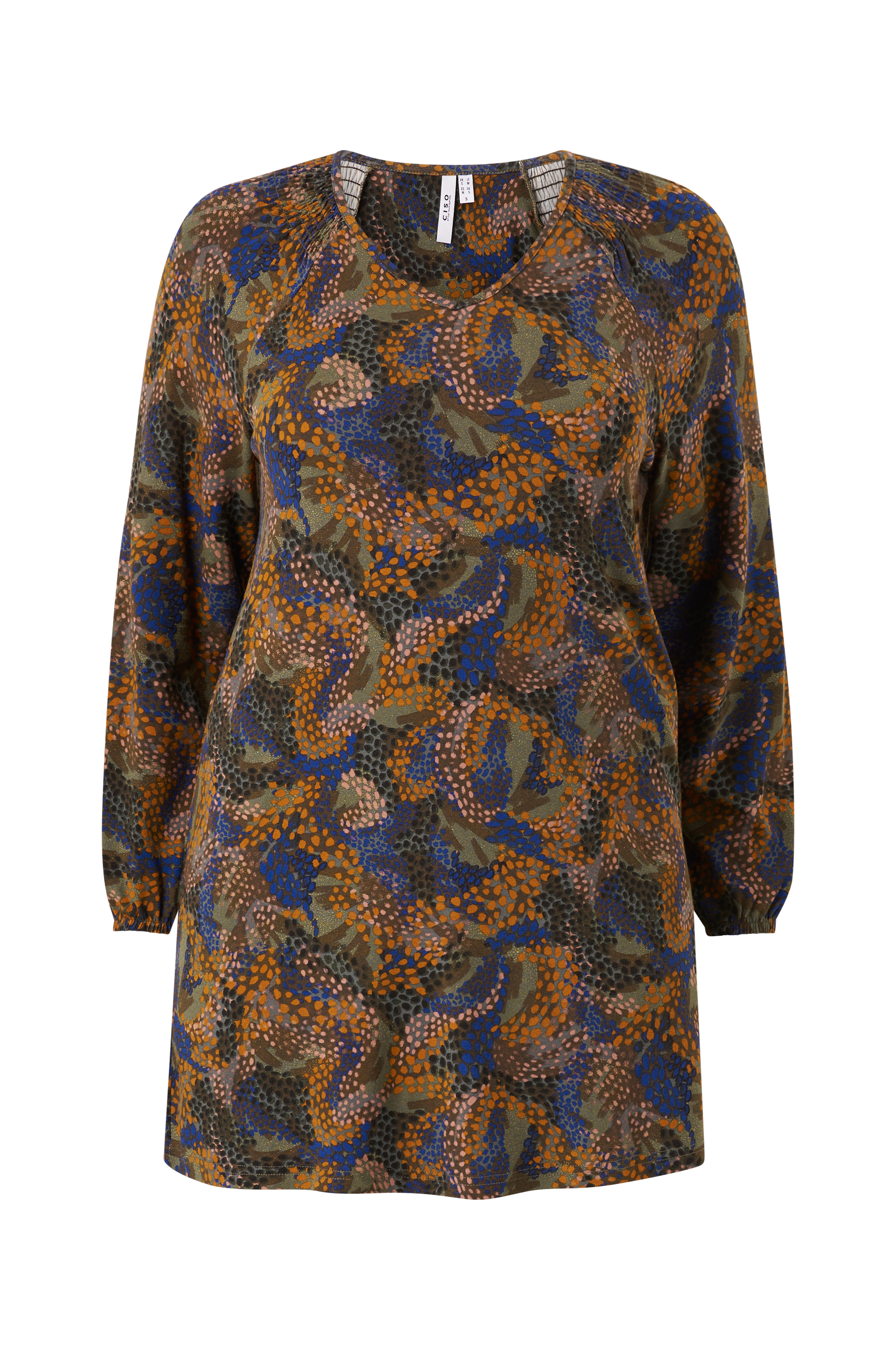 • Kuvioitu tunika viskoosijersey-kankaasta• V-kaula-aukko• Rypytys olkapäissä• Joustonauha hihansuissa• Plus-koot• Pituus: 85 cm koossa S