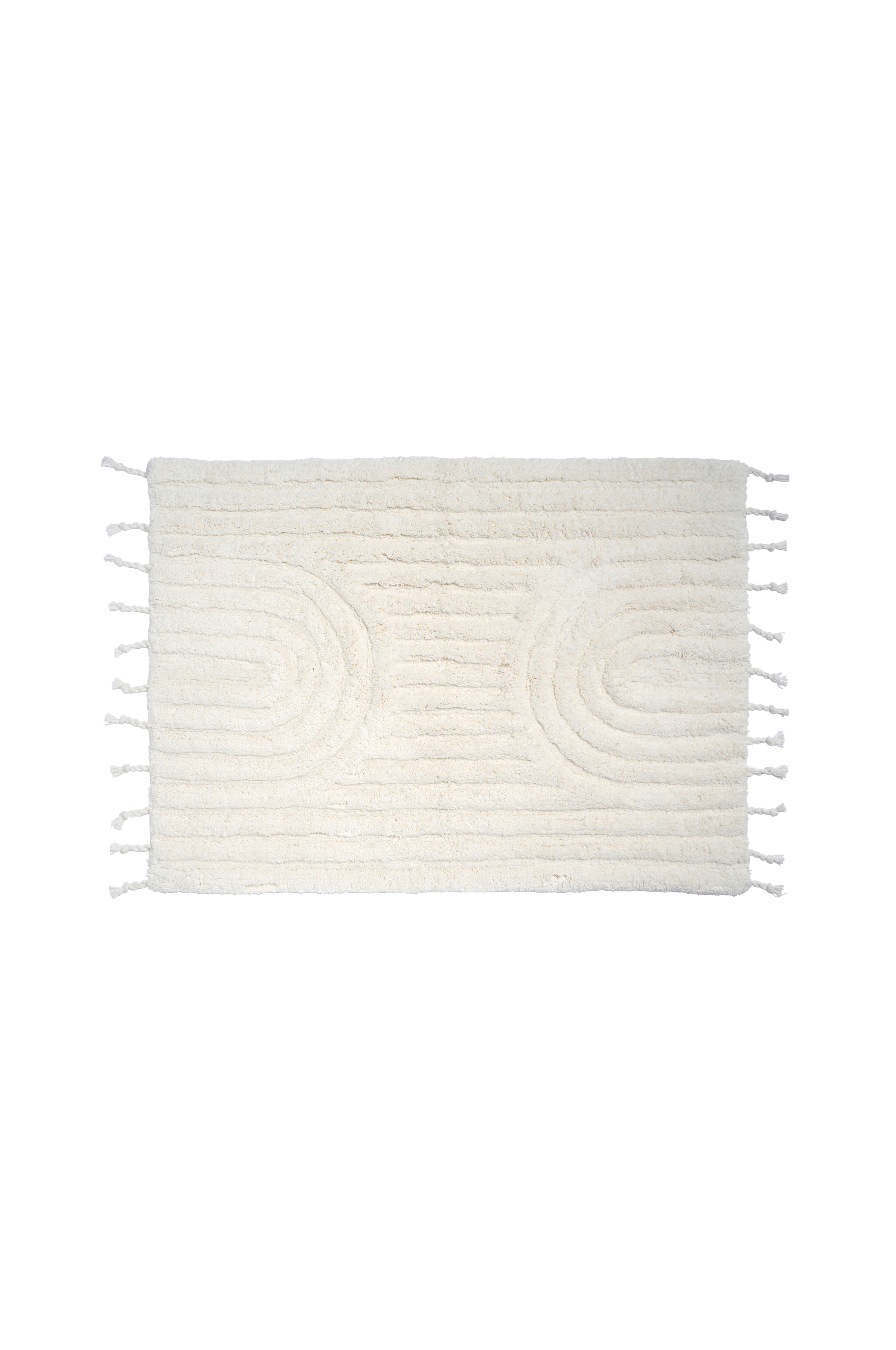 Arch-kylpyhuonematto miellyttävää puuvillaa. Matossa on korkea ja matala kuvio. Kierretyt hapsut lyhyillä sivuilla.