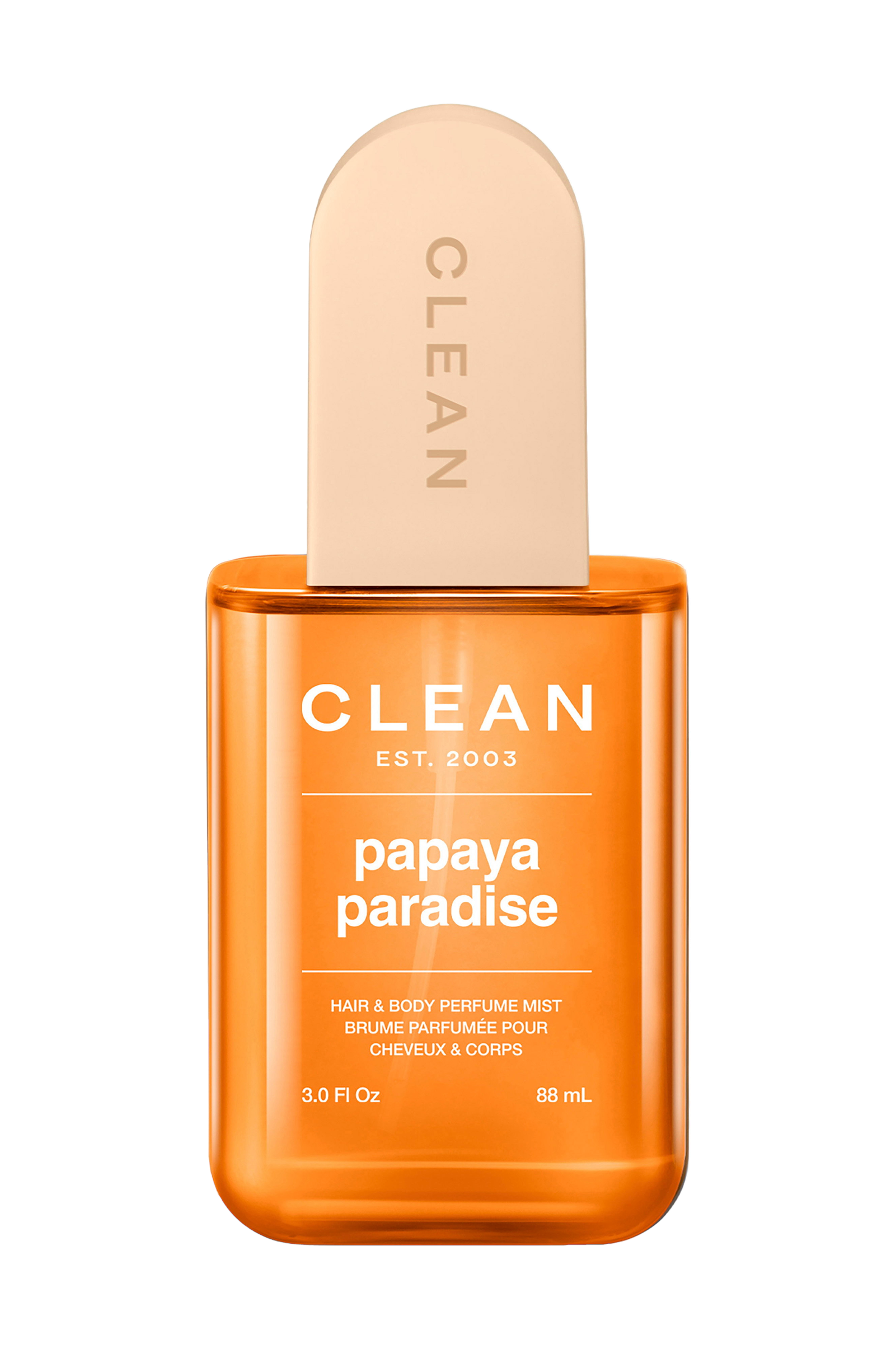 Clean Papaya Paradise Hair & Body Perfume Mist tuoksuu kuin lusikallinen auringonpaistetta tikulla - lämmin, trooppinen ja loputtoman unenomainen. Tuoksu avautuu mehukkaalla papaya, mangon ja ananaksen tuoksulla, joka vie sinut hetkessä saaristomatkalle. Kookoskerman, jasmiinin ja luumunektarin pyörre kietoo aistit auringonpaisteiseen päiväuneen, kun taas vaniljasokeri, tonkapapu ja santelipuu jättävät kultaisen hehkun auringon suutelemalle iholle. Jos haluat hedelmäisen, säteilevän ja kesäisen kerrostusyhdistelmän, yhdistä Rosé All Dayn kanssa.