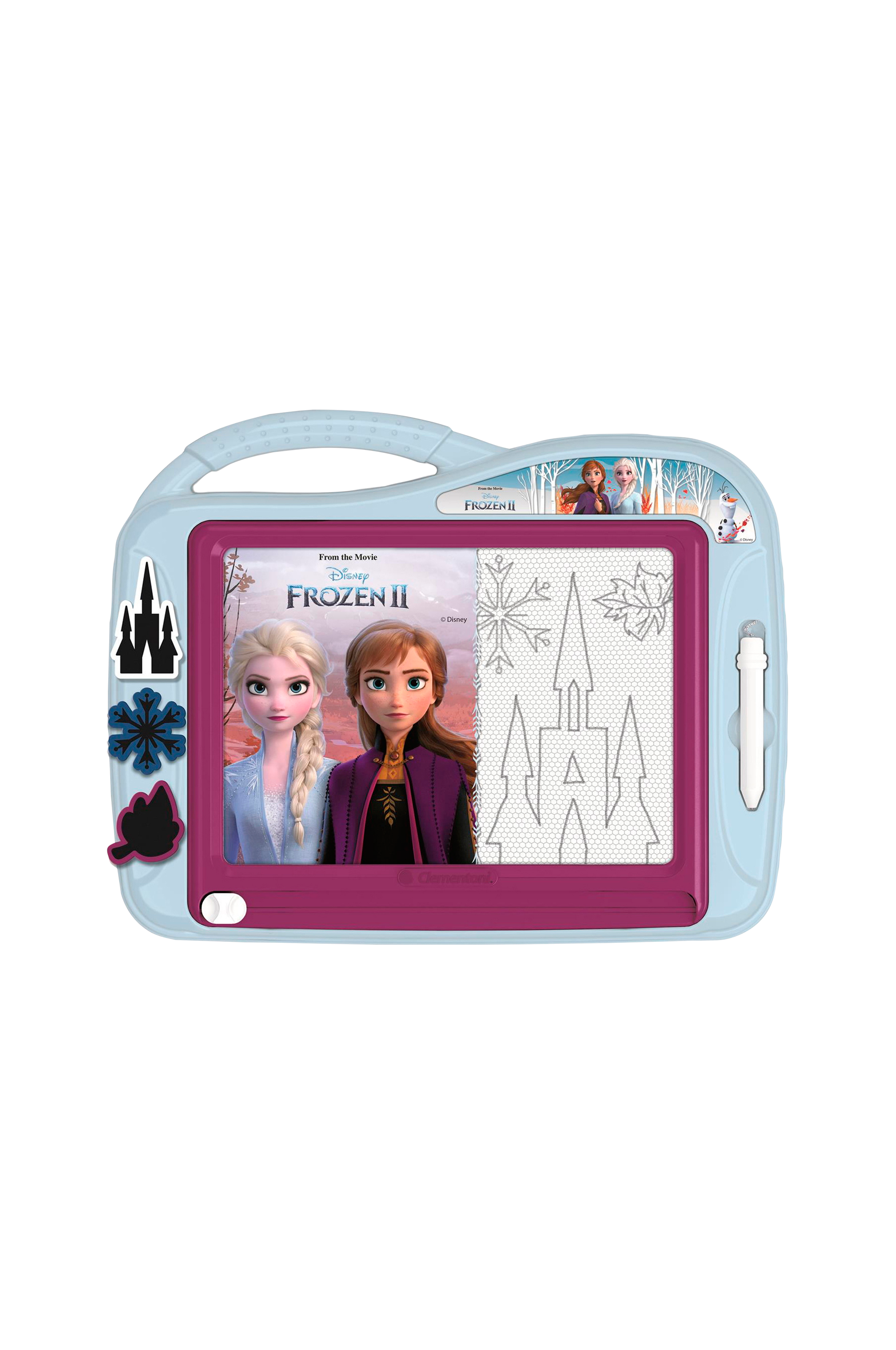Piirustustaulu johon lapsi voi piirtää, poistaa piirustuksensa ja piirtää taas uuden kuvan. Mukana kolme geometrista kuviota piirustuksia varten.