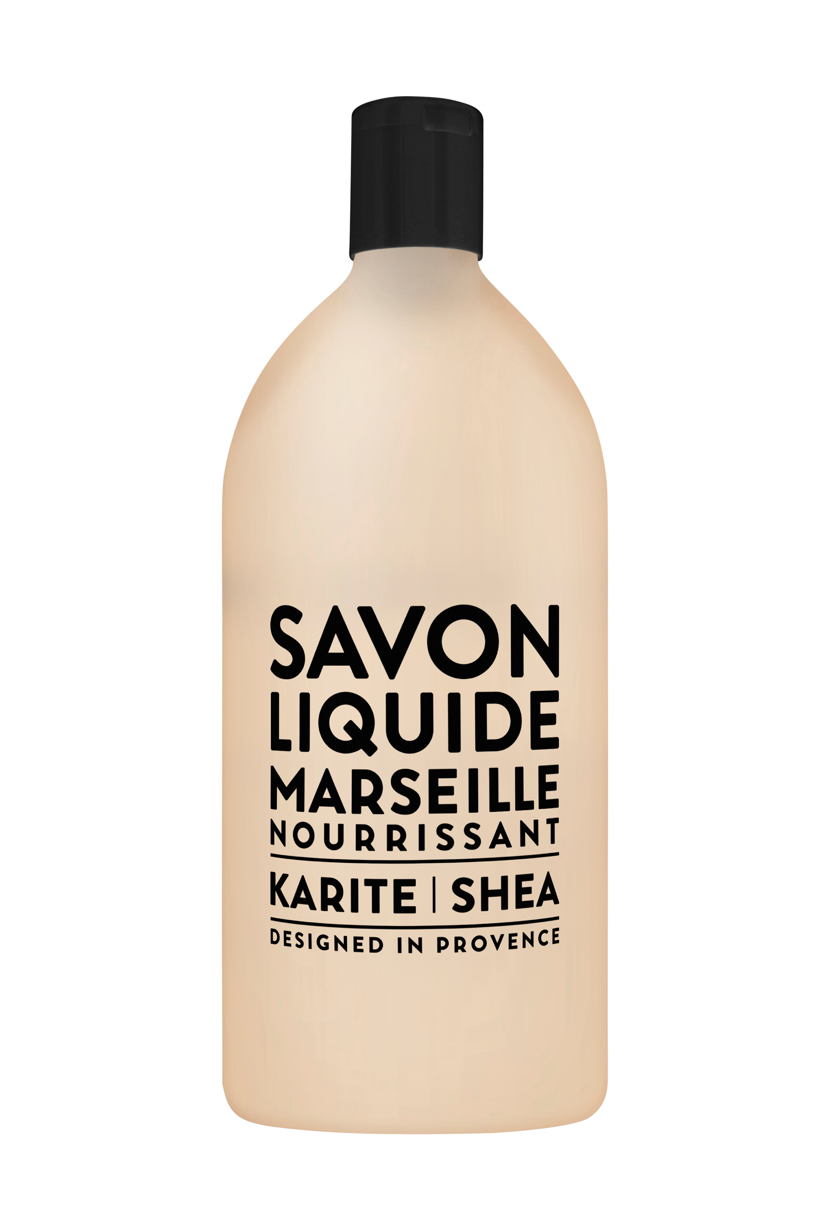 Nestemäinen Marseille-saippua, jossa ravitsevaa shea-voita. Kevyt ja kermainen vaahto puhdistaa hellävaraisesti ja ihoa kuivattamatta.