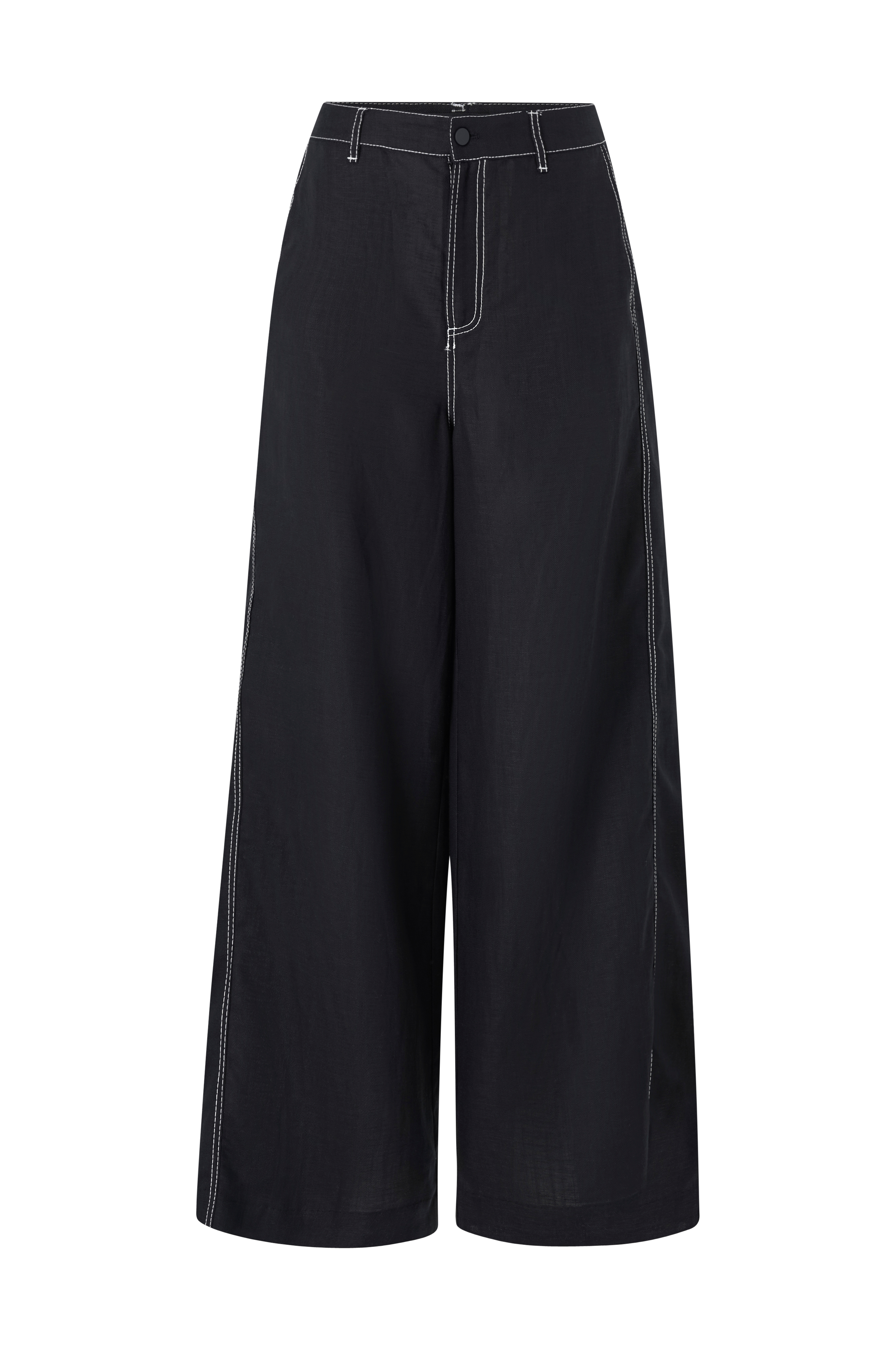 • Housut pellavasekoitteesta kontrastivärisillä saumoilla