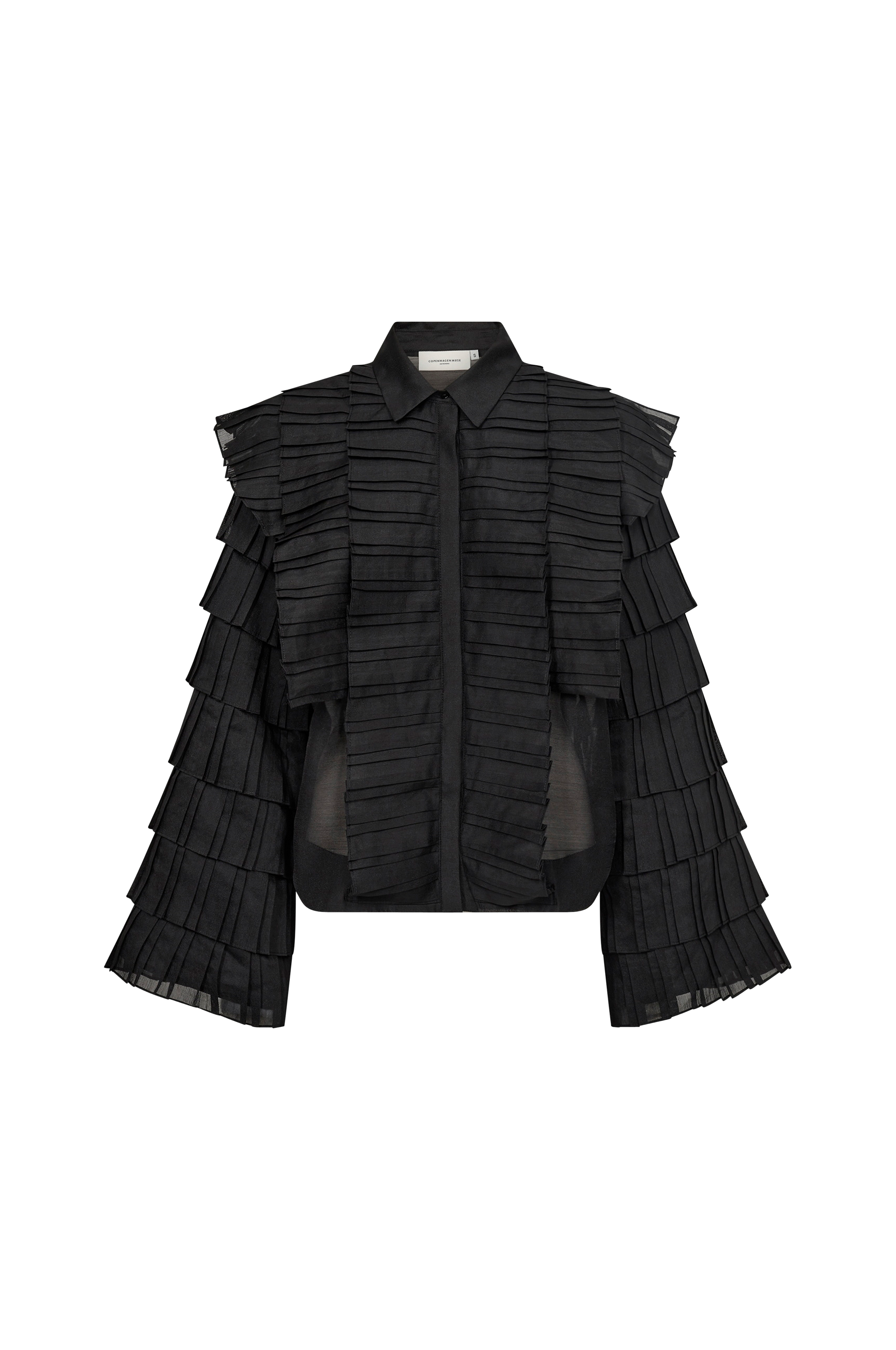 • Paita laskostetuilla röyhelöillä• Leveät hihat röyhelöillä• Kätketyt napit edessä• Läpikuultava laatu