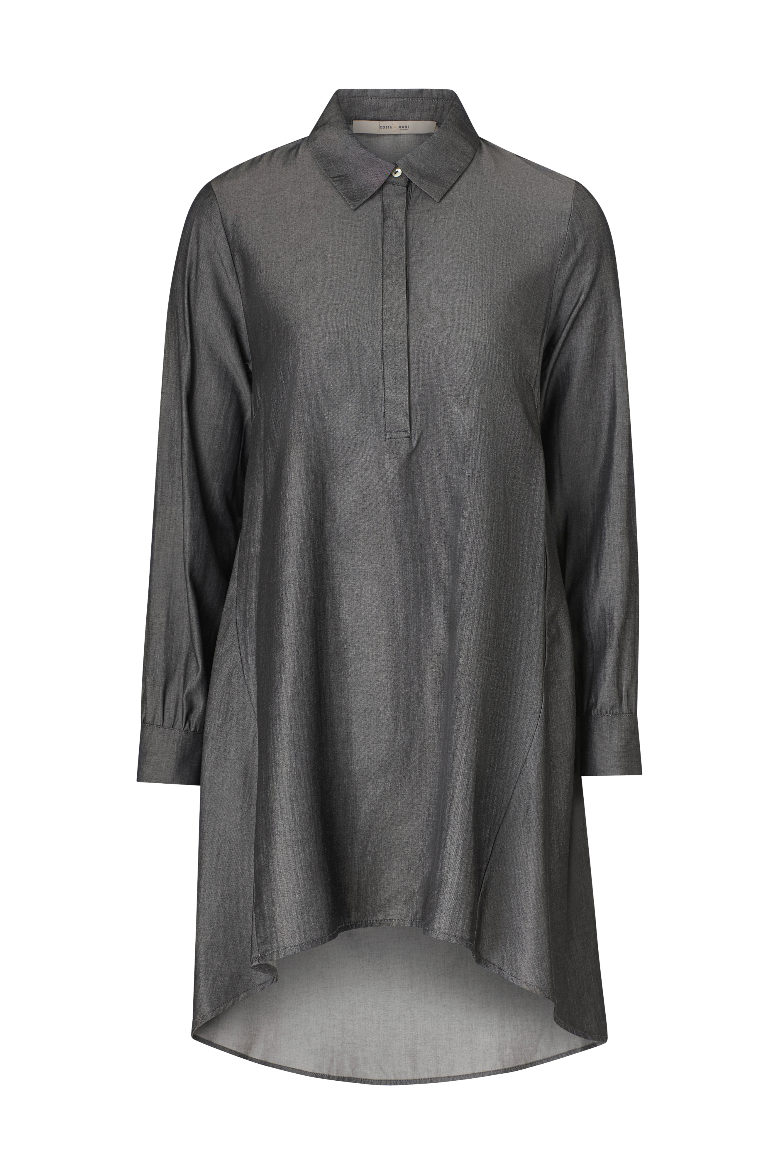 • Levenevä malli• Pieni kaulus• Lyhyt nappietupuoli kätketyillä napeilla• Pitkä hiha hihansuulla• Pyöristetty helma pidemmällä takaosalla