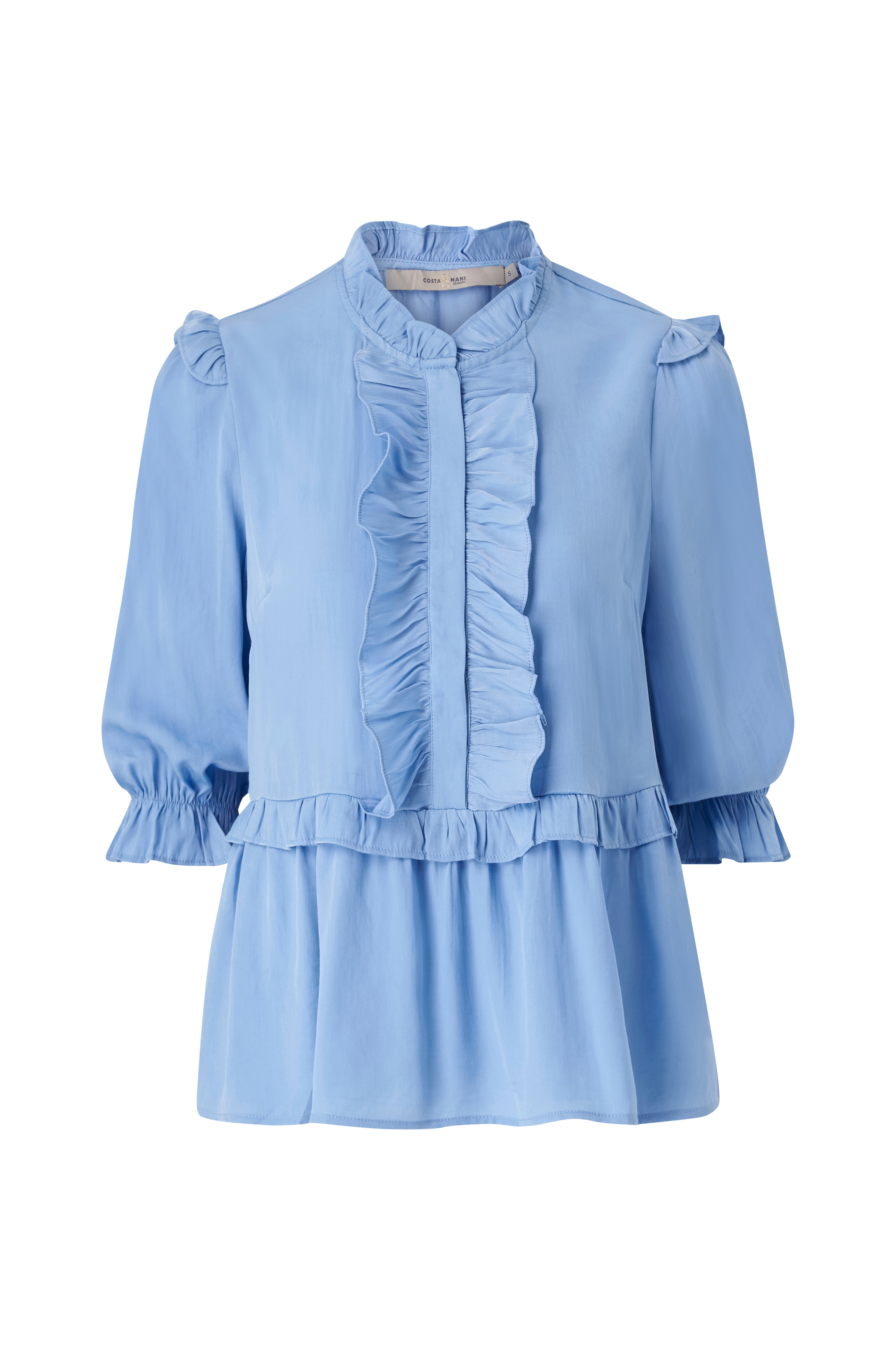 • Pusero viskoosisekoitteesta röyhelöillä• Kätketyt napit ylhäällä edessä• Sulkuläppä röyhelöllä vyötäröllä• 3/4-pituiset hihat röyhelöllä hihansuissa