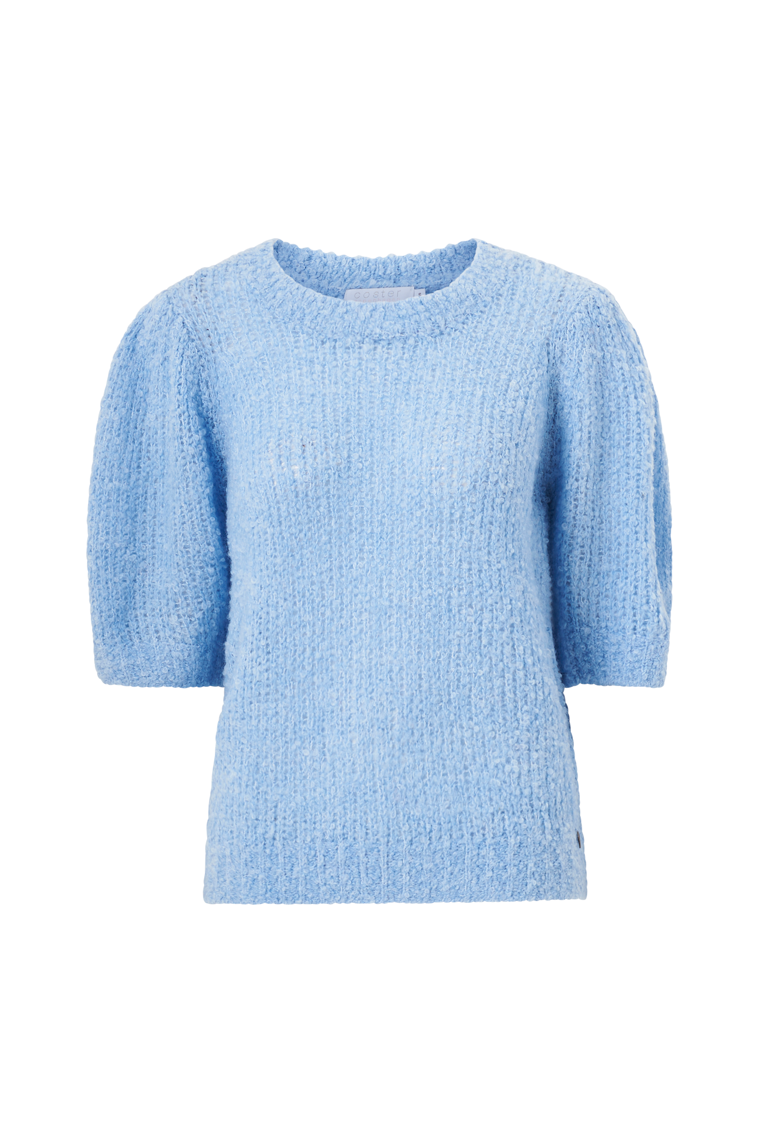 Neulepusero pehmeää alpakkasekoitetta. Puolipitkät puhvihihat. Pyöreä pääntie.