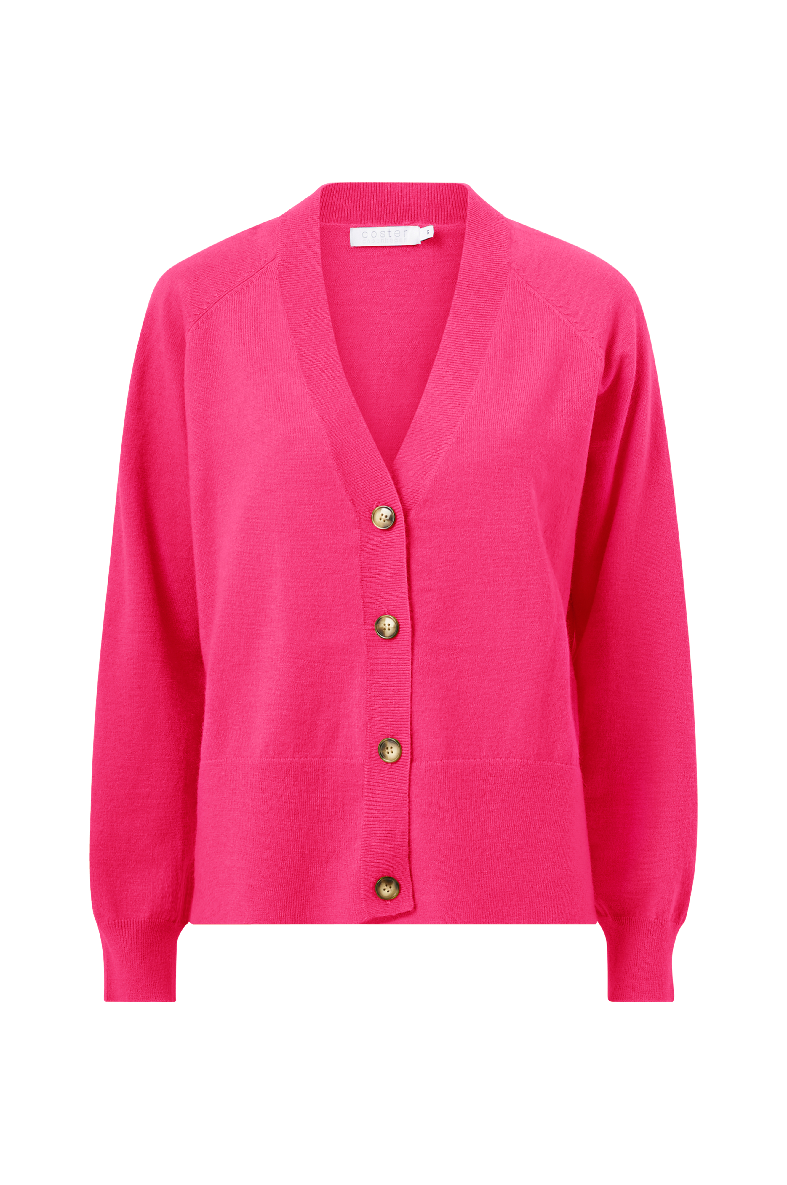 Pehmeä neuletakki villasekoitetta. V-pääntie ja raglanhihat. Sivuhalkiot helmassa. Hihansuissa ja helmassa joustinneulereuna.