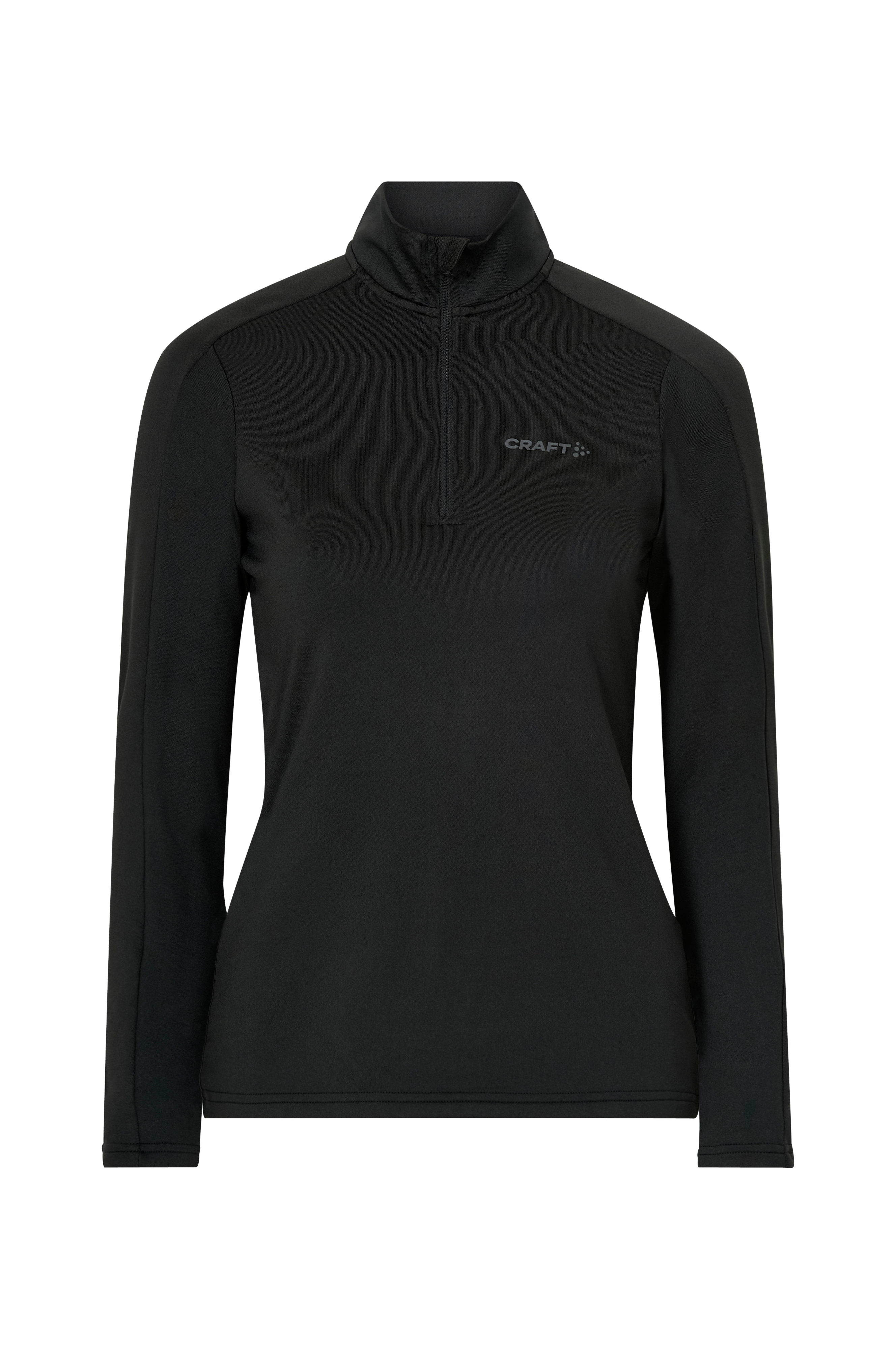 Craft Core Gain Midlayer W -treenipusero pehmeää ja joustavaa teknistä materiaalia, jossa harjattu sisäpinta. Korkea kaulus ja lyhyt vetoketju.