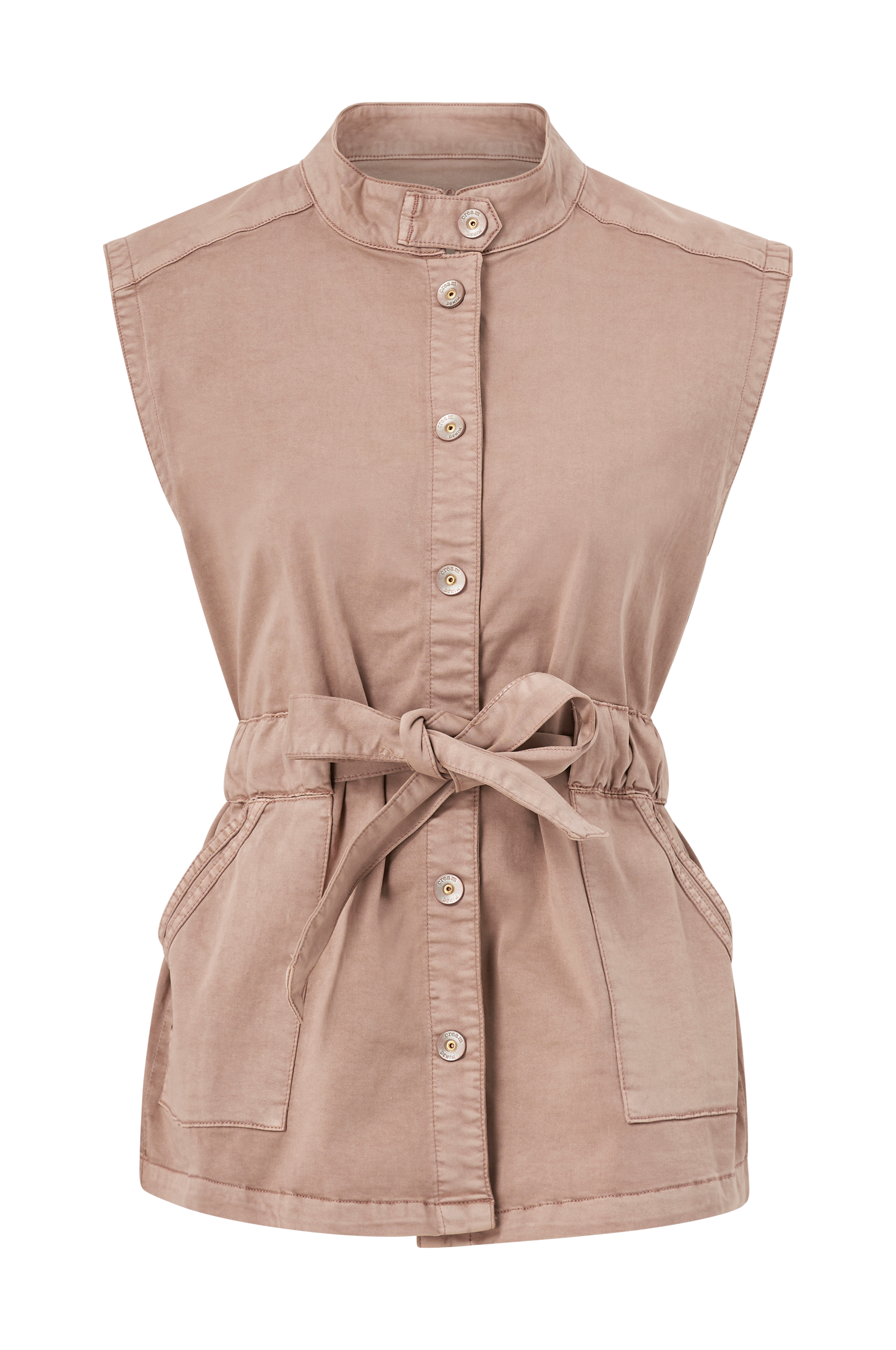 Suora malli, puolikorkea kaulus ja edessä painonapit. Päälleommellut vyölenkit ja solmimisvyö vyötäröllä sekä kaksi etutaskua. Pituus n. 69 cm koossa 36.