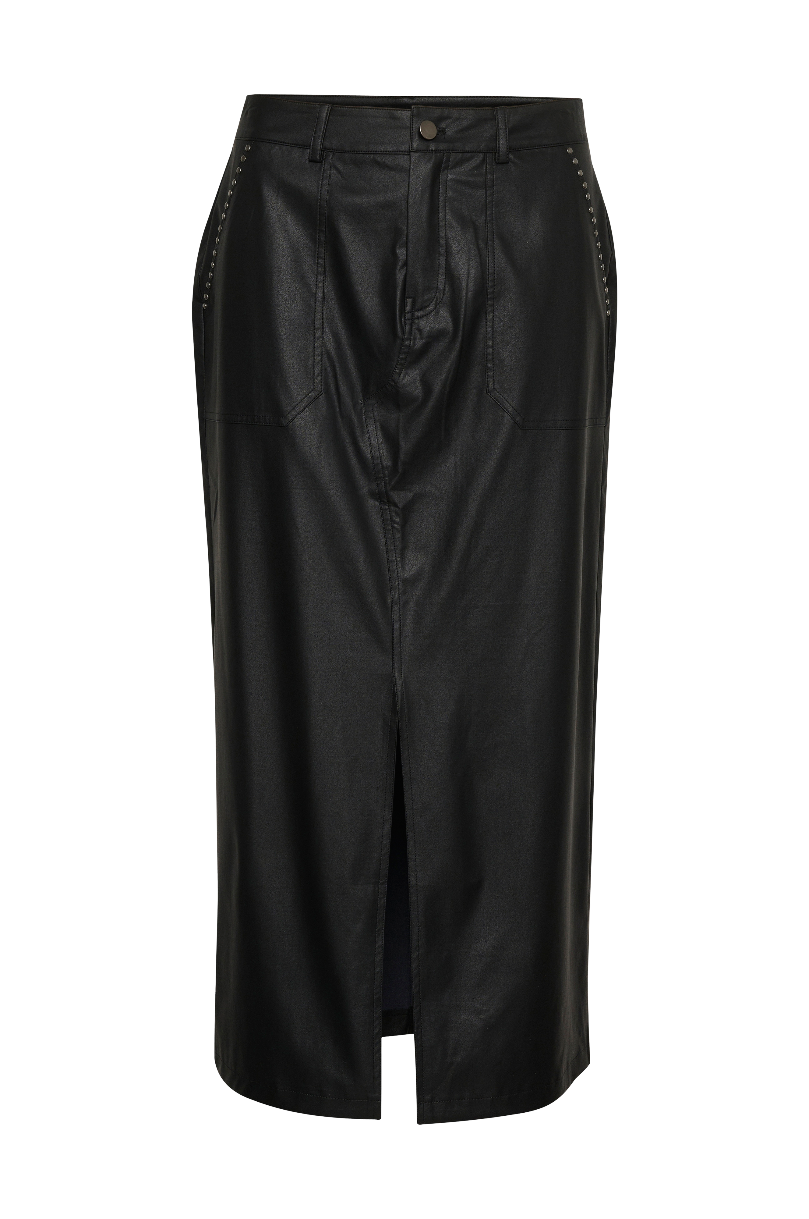 • Pitkä malli nahkavaikutelmasta• Vyötärönauha silmukoilla• Vinot taskut niiteillä reunassa• Kiinniommellut takataskut• Korkea halkio alhaalla edessä• Pituus: 90 cm koossa 34
