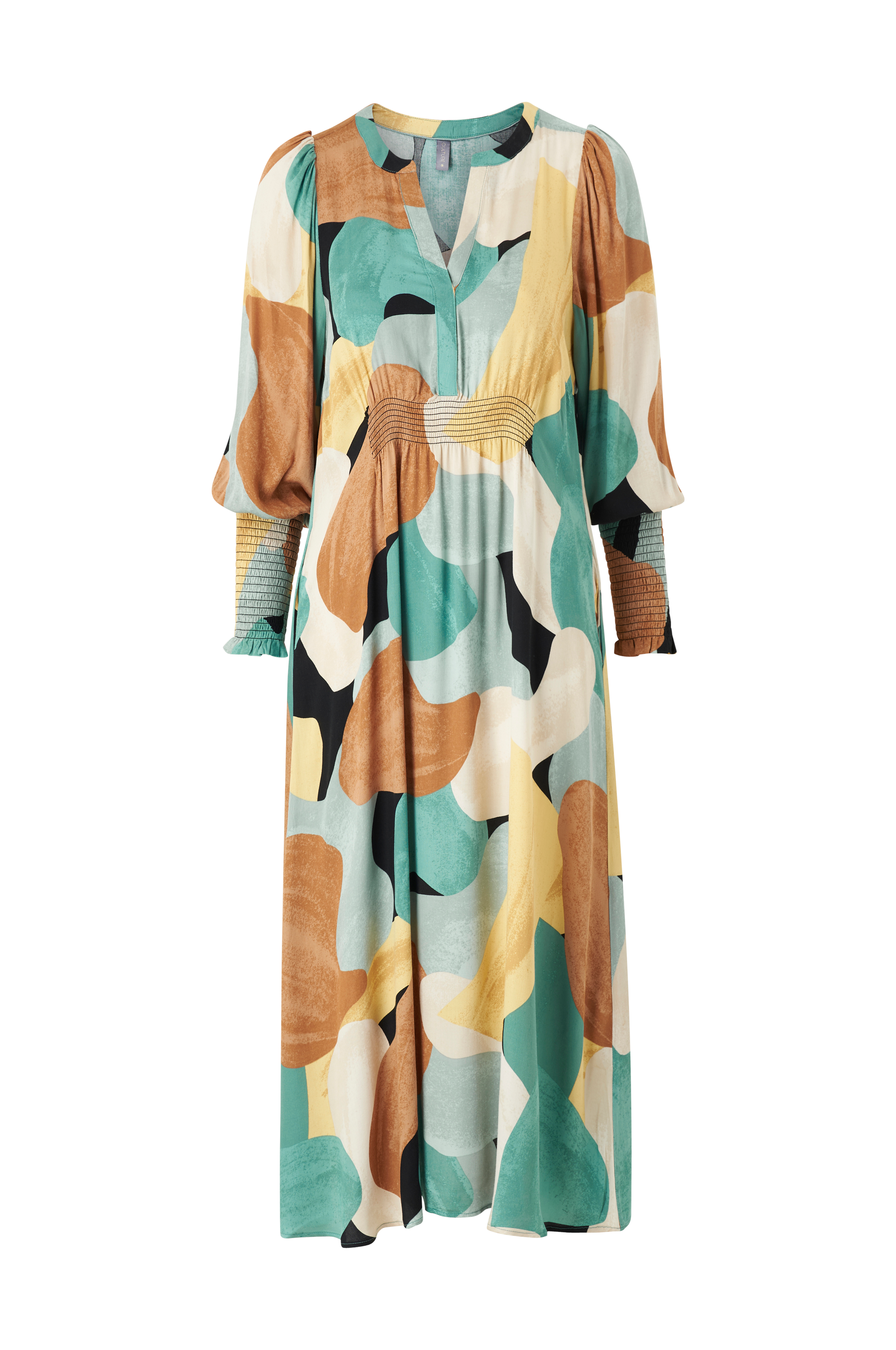 • Pitkät hihat leveällä rypytyksellä hihansuissa