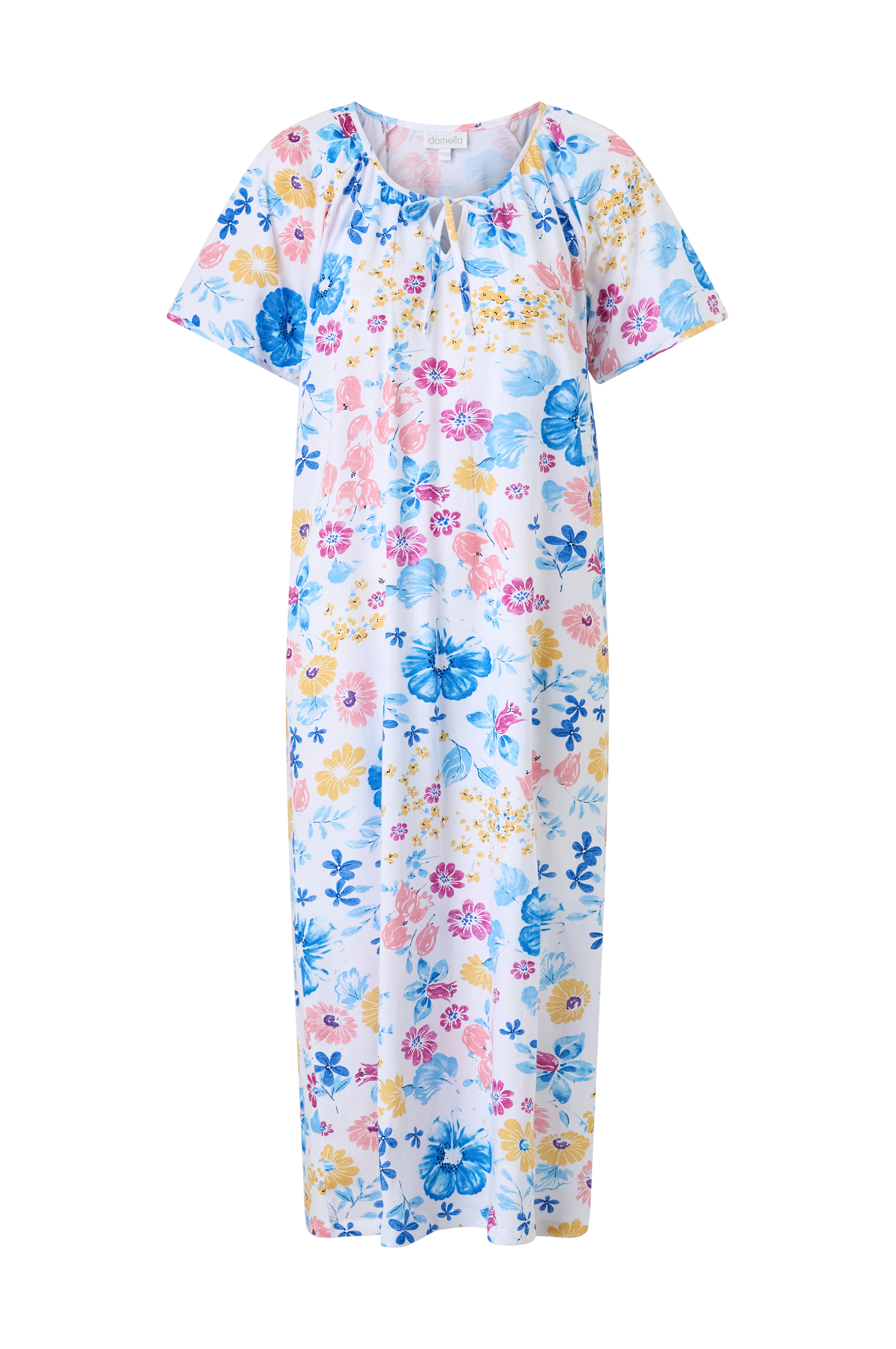 • Pitkä yöpaita puuvillajersey-kankaasta• Pyöreä, poimutettu kaula-aukko nyörillä• Lyhyet raglanhihat