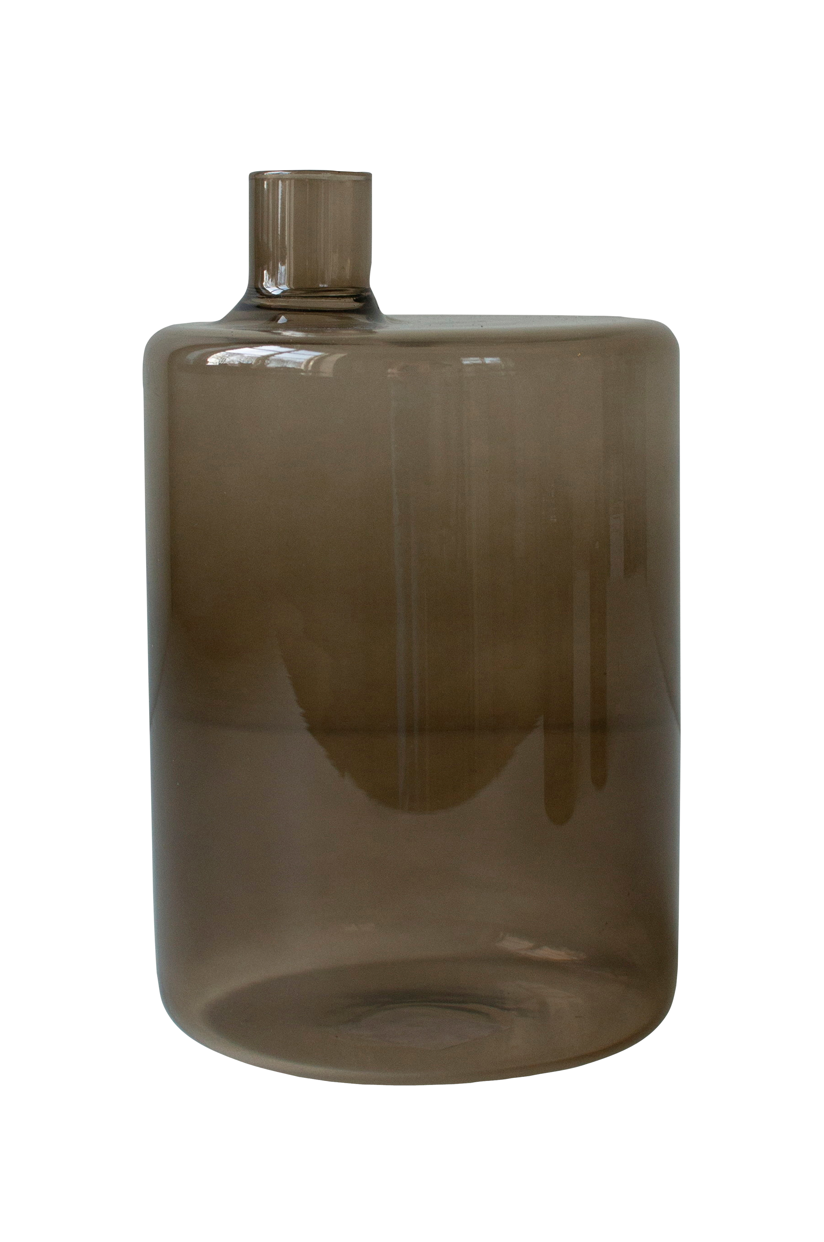 Tyylikäs maljakko lasia. Halkaisija 13 cm, korkeus 21 cm