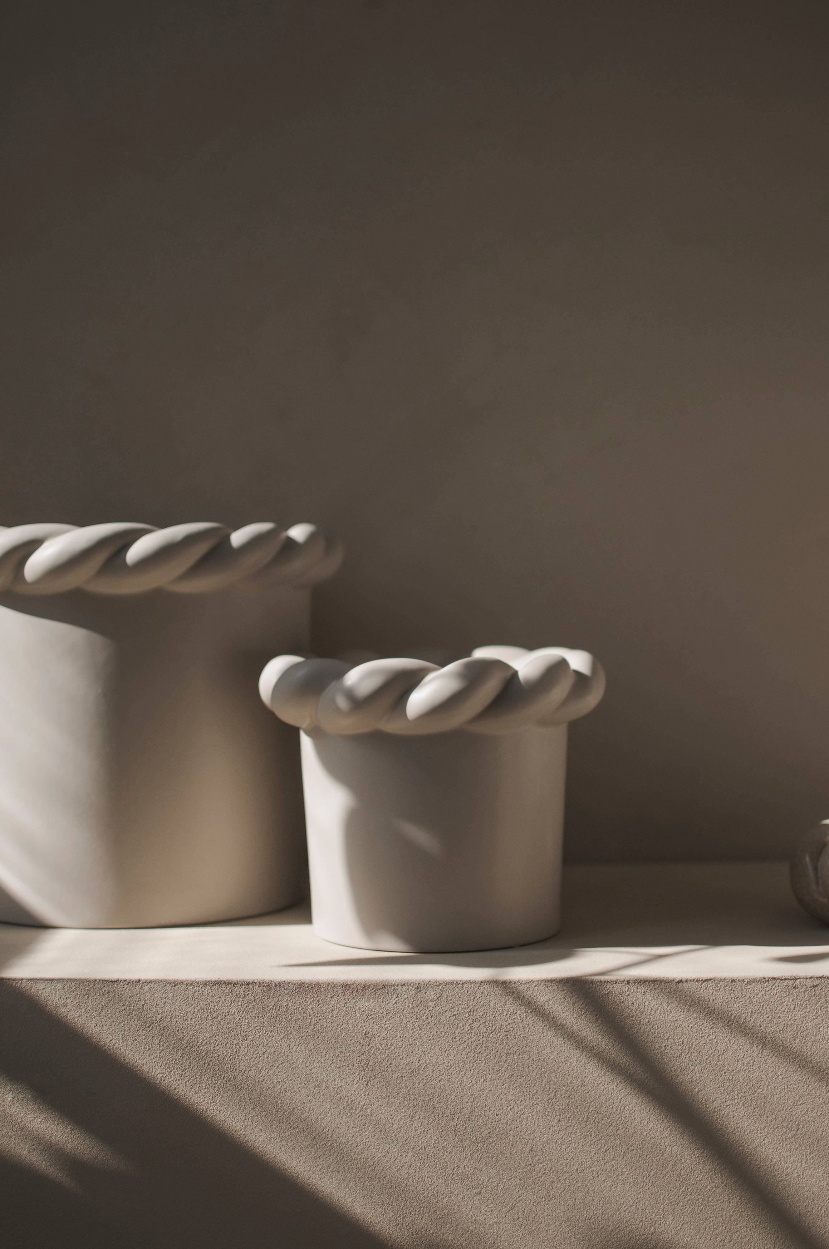 Keramiikkaruukku, jossa tyylikäs reuna ylhäällä. Mitat: Halkaisija 14-19,5 cm, korkeus 16 cm.