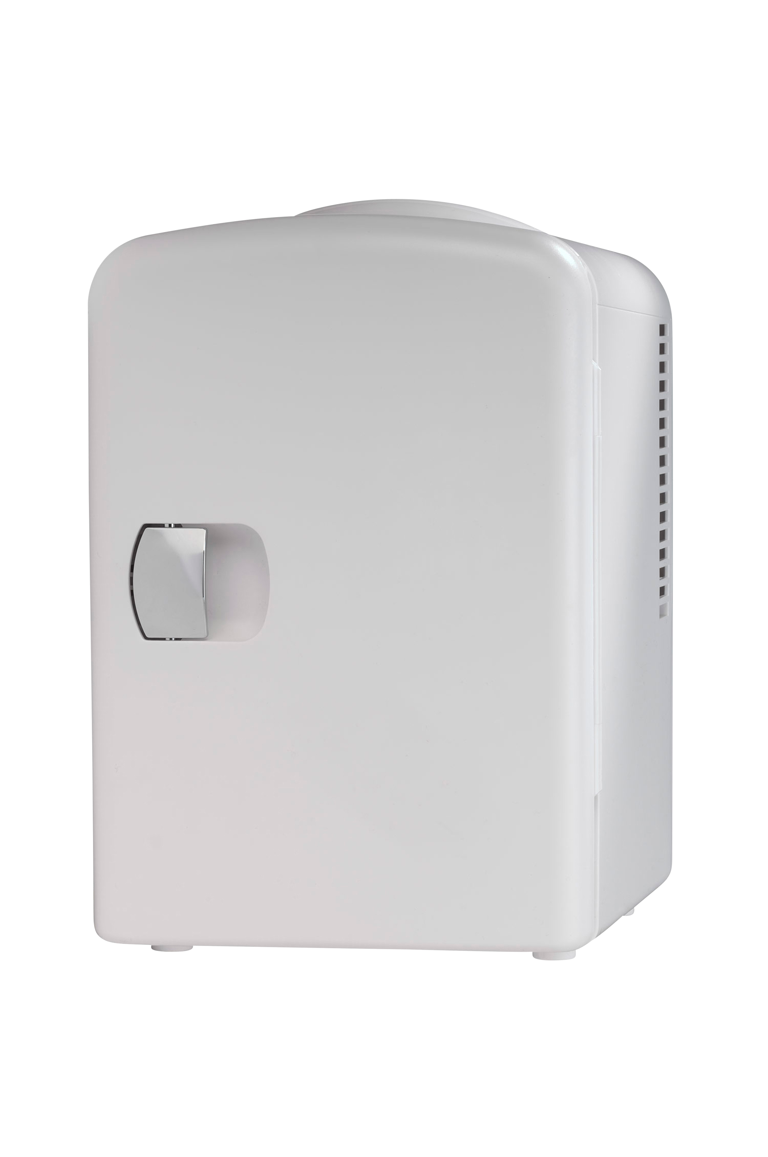 Denver-minijääkaappi, jonka vetoisuus on 4 litraa (6 virvoitusjuomapurkkia). Mattapinta ja krominvärinen ovenkahva.
