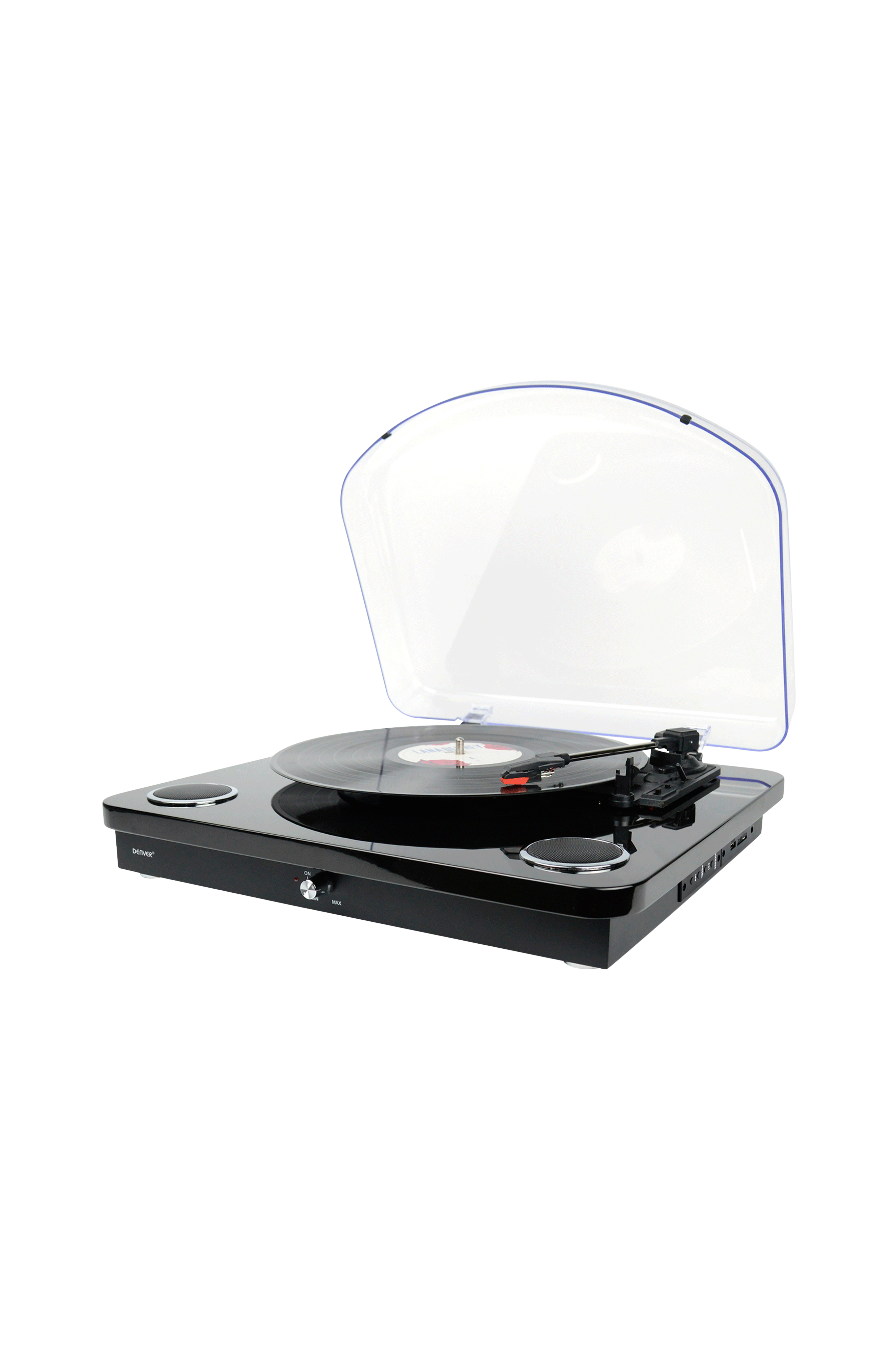Toimii myös normaalina levysoittimena sisäänrakennettujen kaiuttimien ja musiikkijärjestelmään kytkettävän phono-liitännän ansiosta