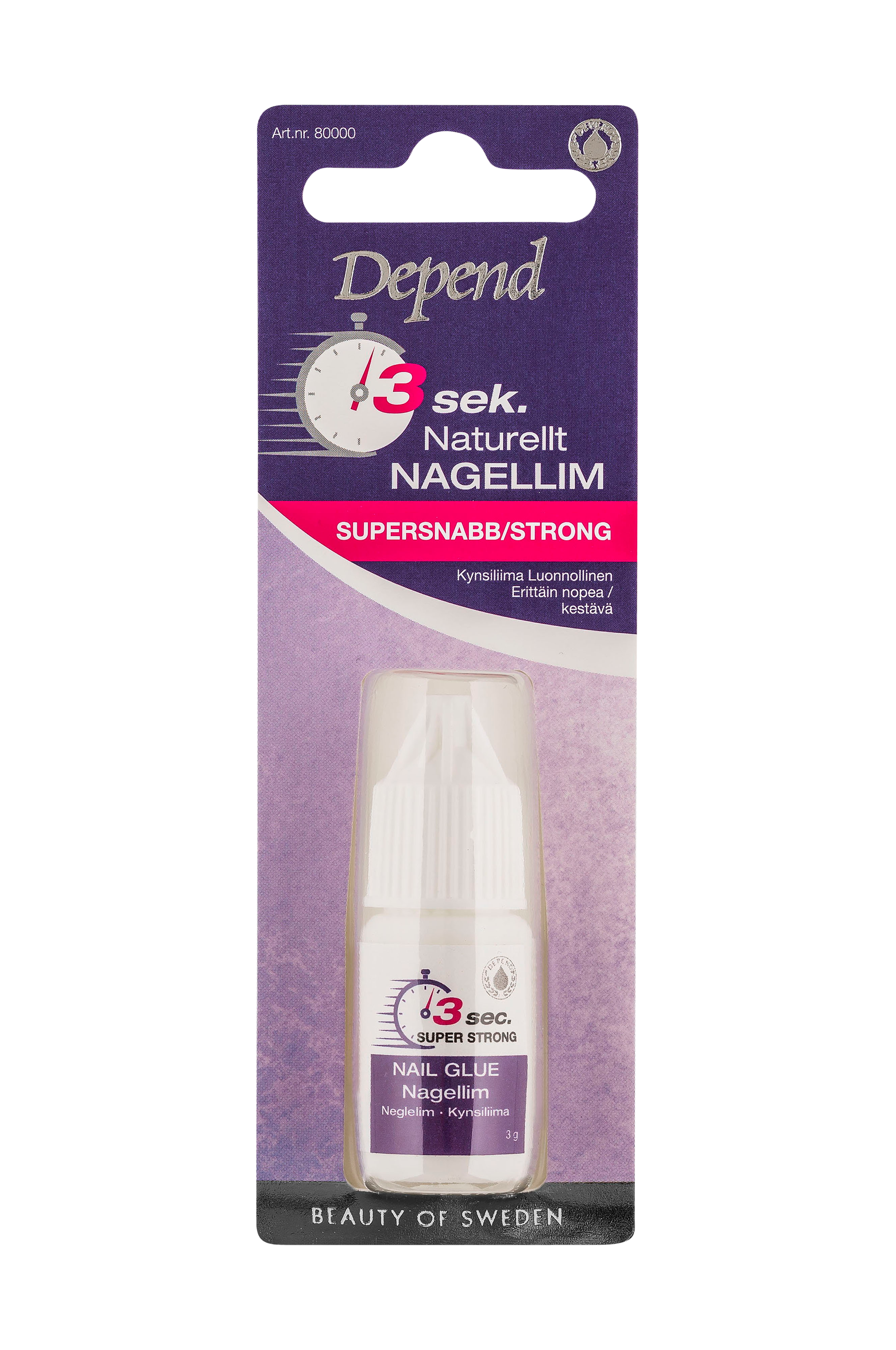 Luonnollinen kynsiliima tekokynsien ja irtokynsien kiinnittämiseen. Kiinnittyy vain 3 sekunnissa. Käytä liiman poistamiseen Dependin tekokynsien poistoainetta.