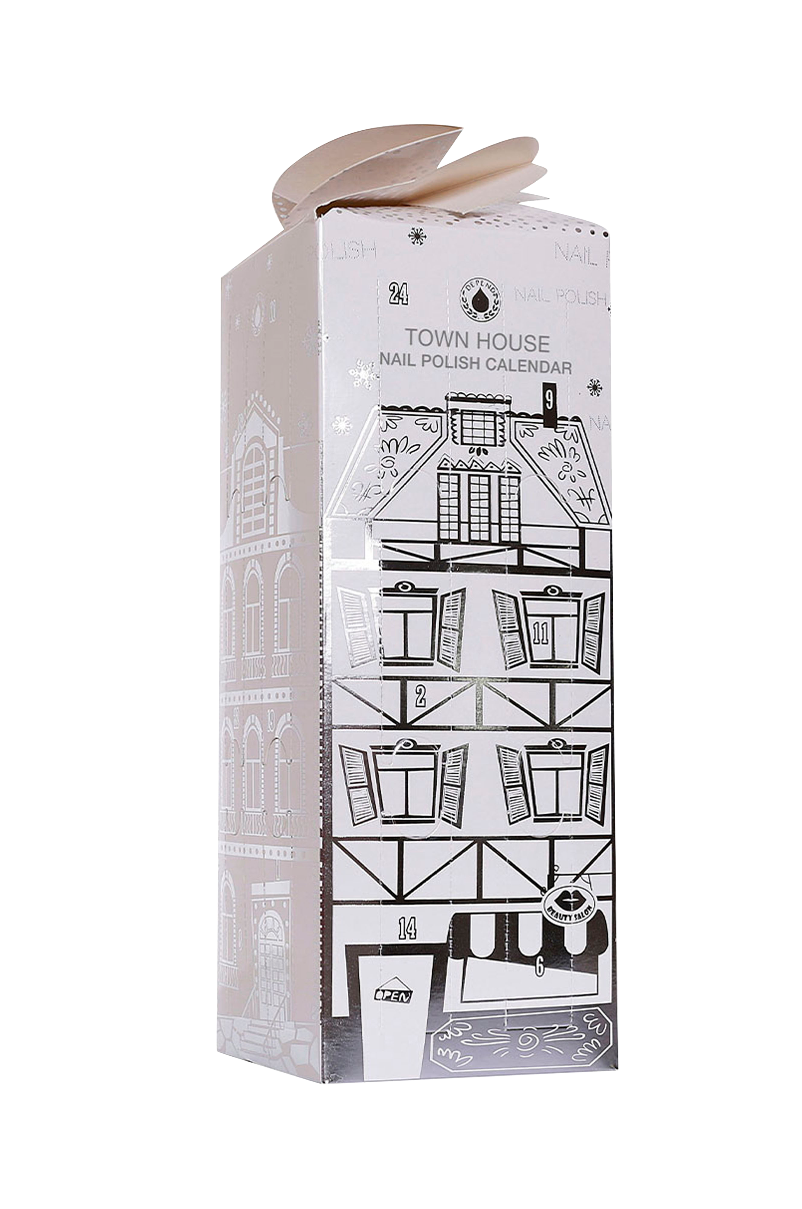 Lahjapakkauksesta löytyy uusi kynsilakka joulukuun jokaisena päivänä jouluaattoon asti!24 luukkua ja minikokoista kynsilakkaa klassisissa väreissä, joissa on hohtavia, kimaltavia ja metallinhohtoisia sävyjä. Sisältää myös alus- ja päällyslakan.
