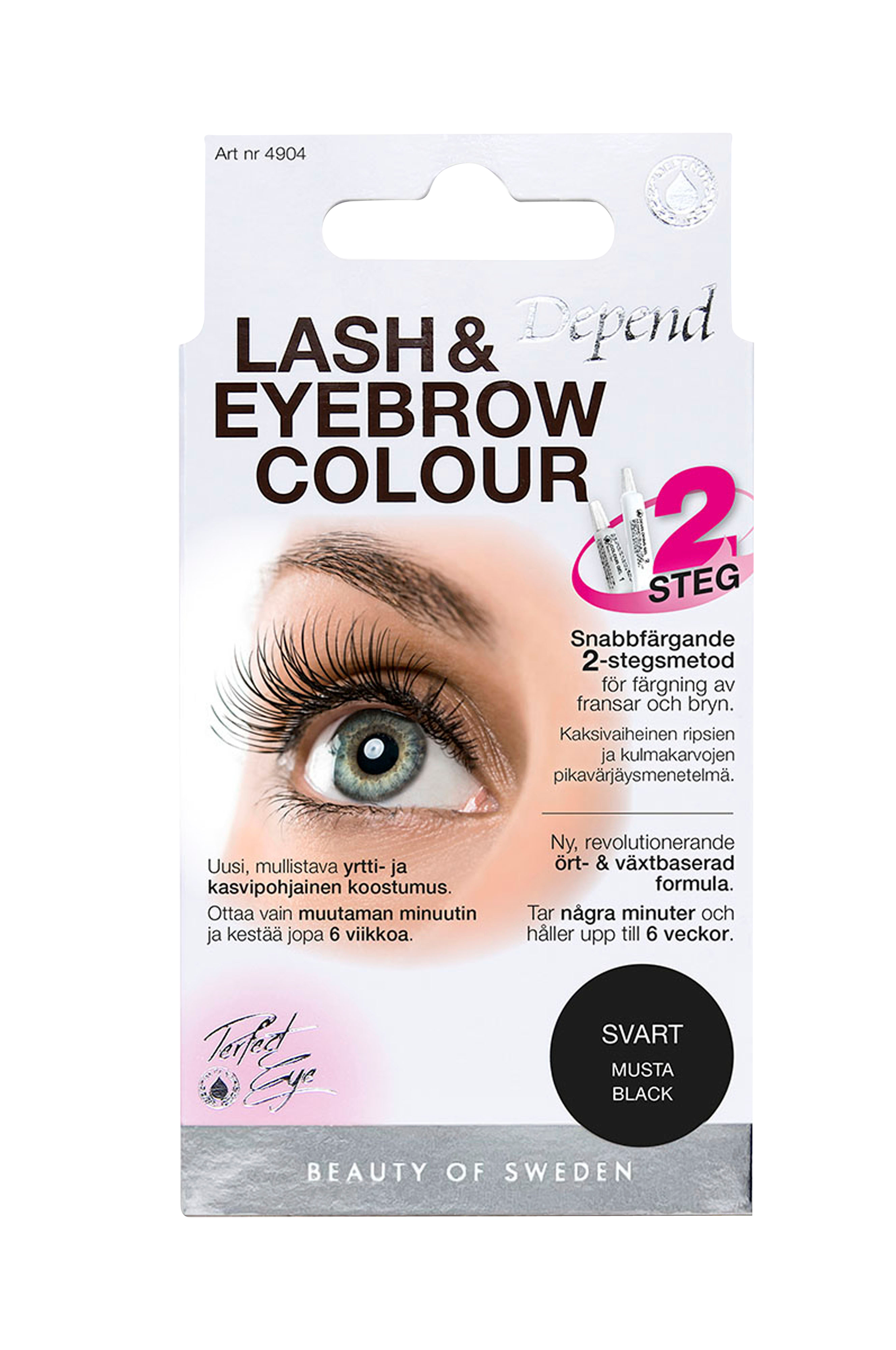 Depend Lash & Eyebrow Colour ripsi- ja kulmakarvavärillä saat näyttävät silmät ilman meikkiä. Silmäsi ovat aina luonnollisen korostetut, heti aamulla, urheillessa, aurinkoa ottaessa tai uidessa. Lash & Eyebrow Colour -tuotteen uusi, vallankumouksellinen yrtti- ja kasvipohjainen koostumus sisältää mm. siankärsämöä, kehäkukkaa, vihreää teetä ja mustikkaa. Ainutlaatuinen yhdistelmä on tehnyt tuotteesta vedenkestävän ja miellyttävän käyttää. Nopea ja helppo levittää ja antaa pitkäkestoisen, intensiivisen värin. Luo vaikutelman pidemmistä ripsistä sekä korostaa kulmakarvoja kauniisti. Värjäys vie vain muutaman minuutin, ja väri kestää jopa 6 viikkoa.