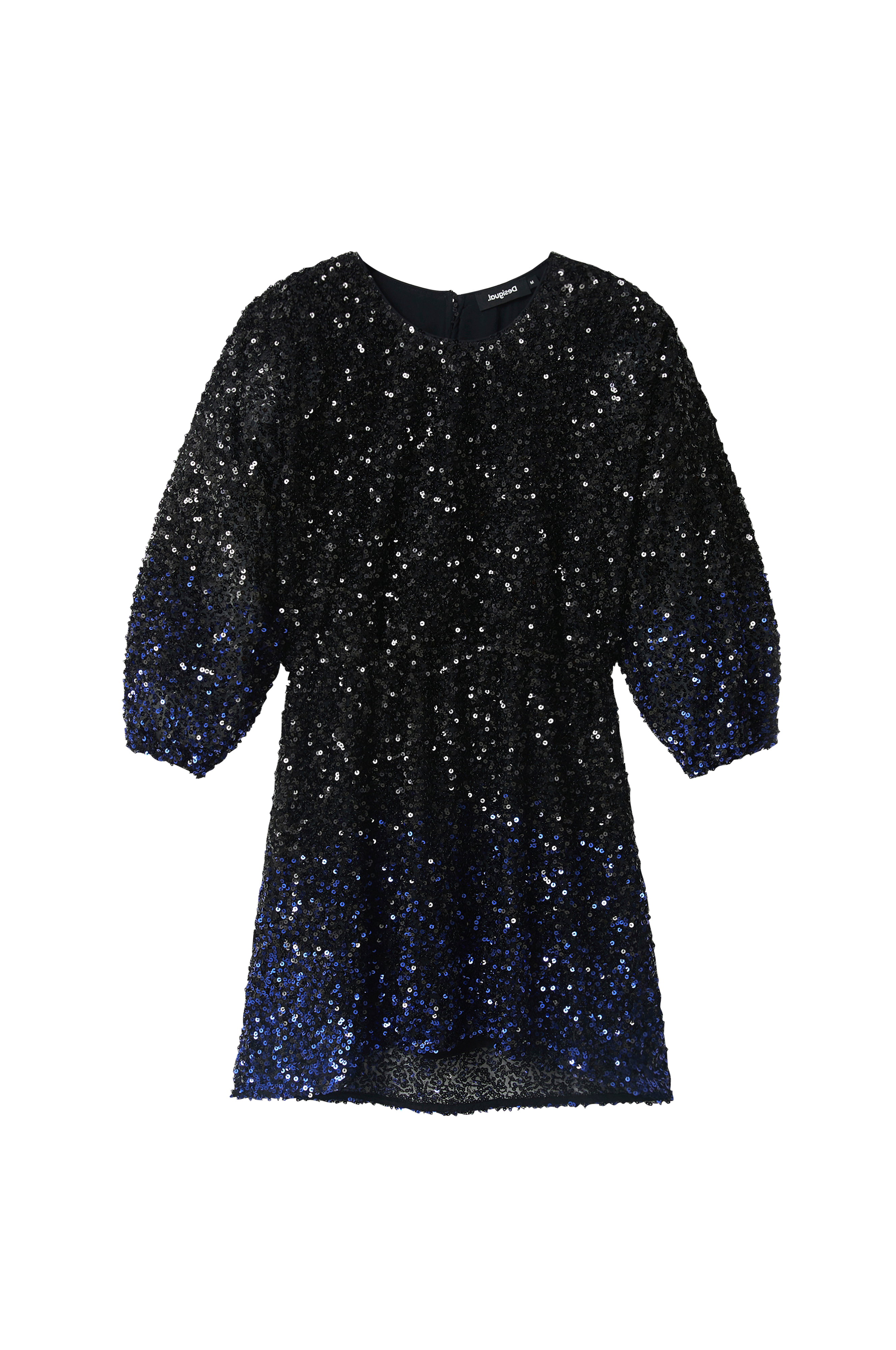 • Lyhyt juhlamekko kimaltelevilla paljeteilla